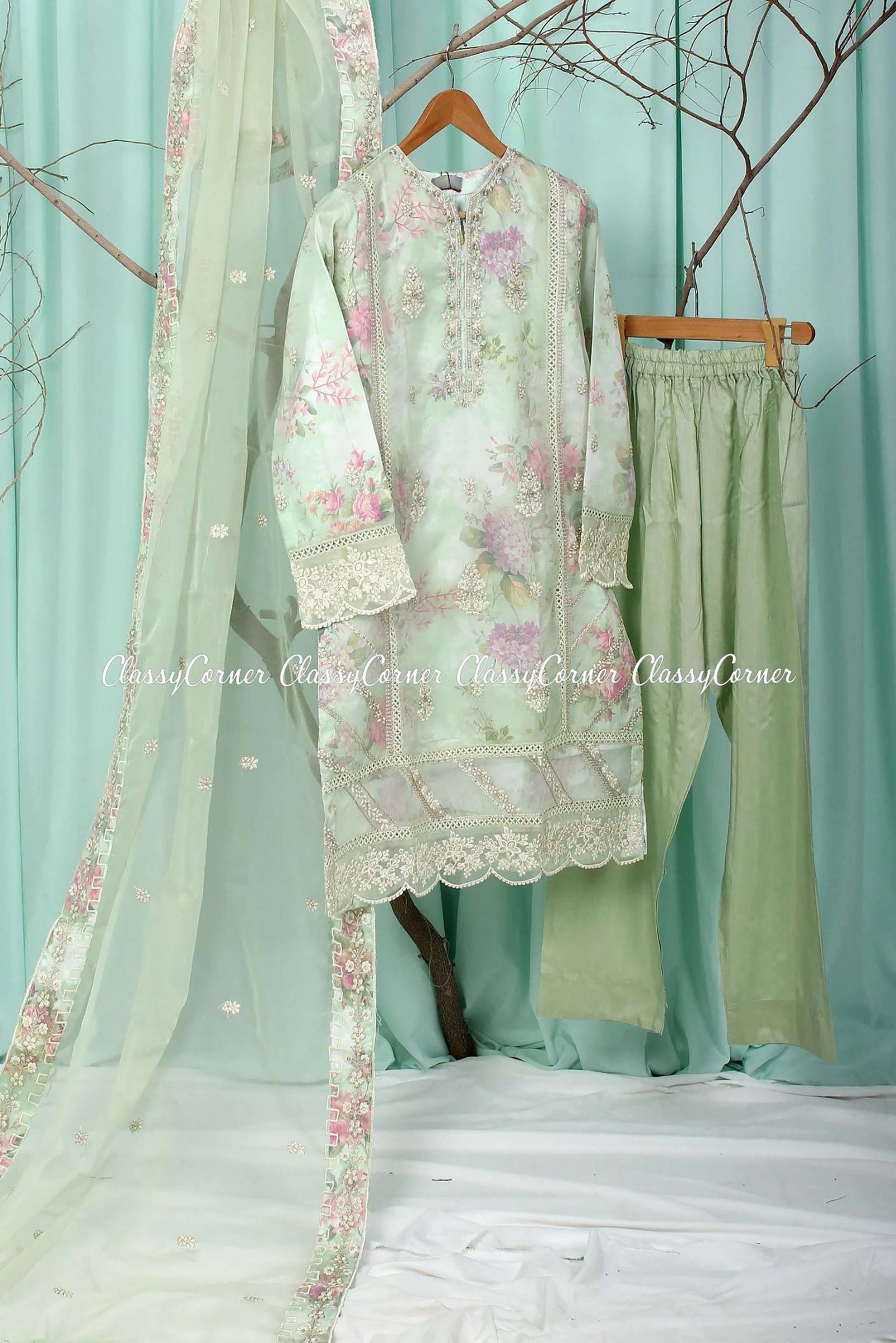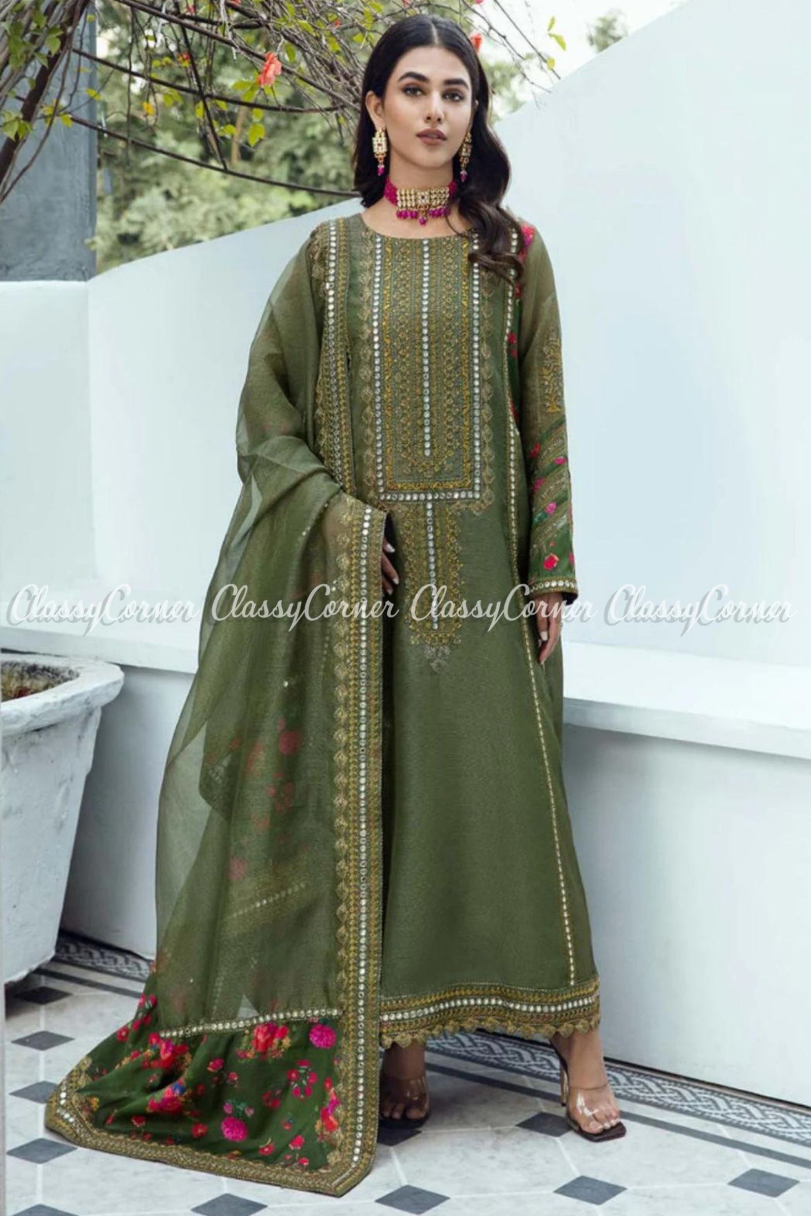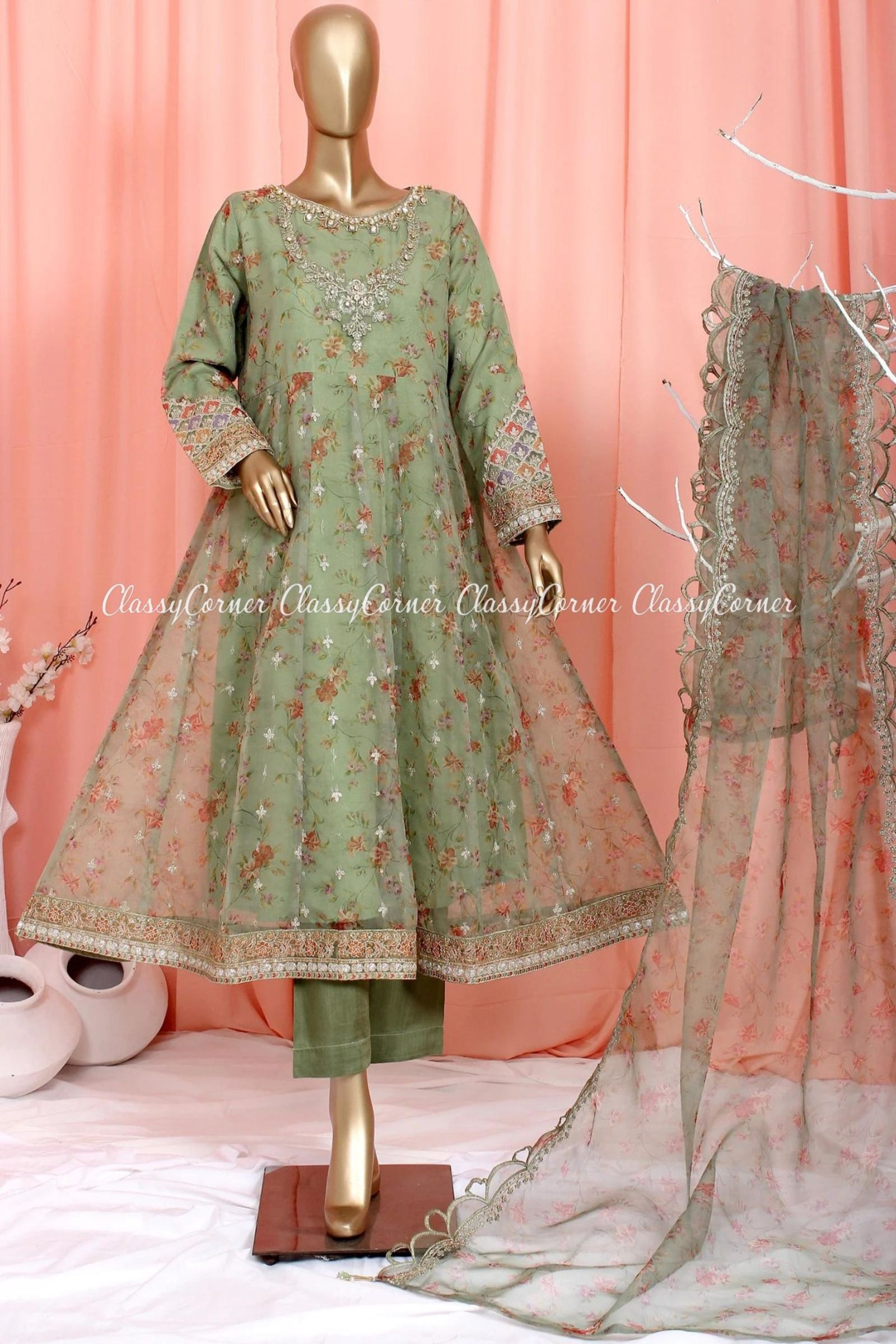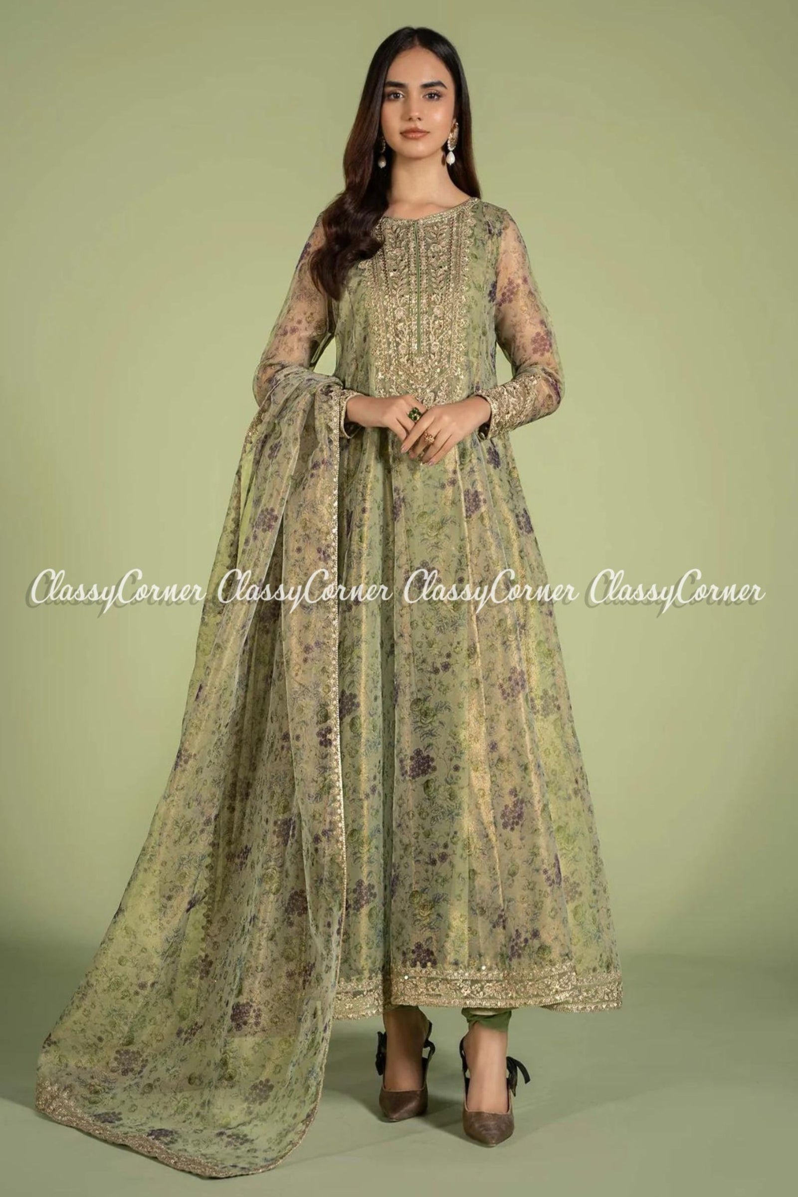$409.99 AUDGreen Organza Pakistani Shalwar Kameez