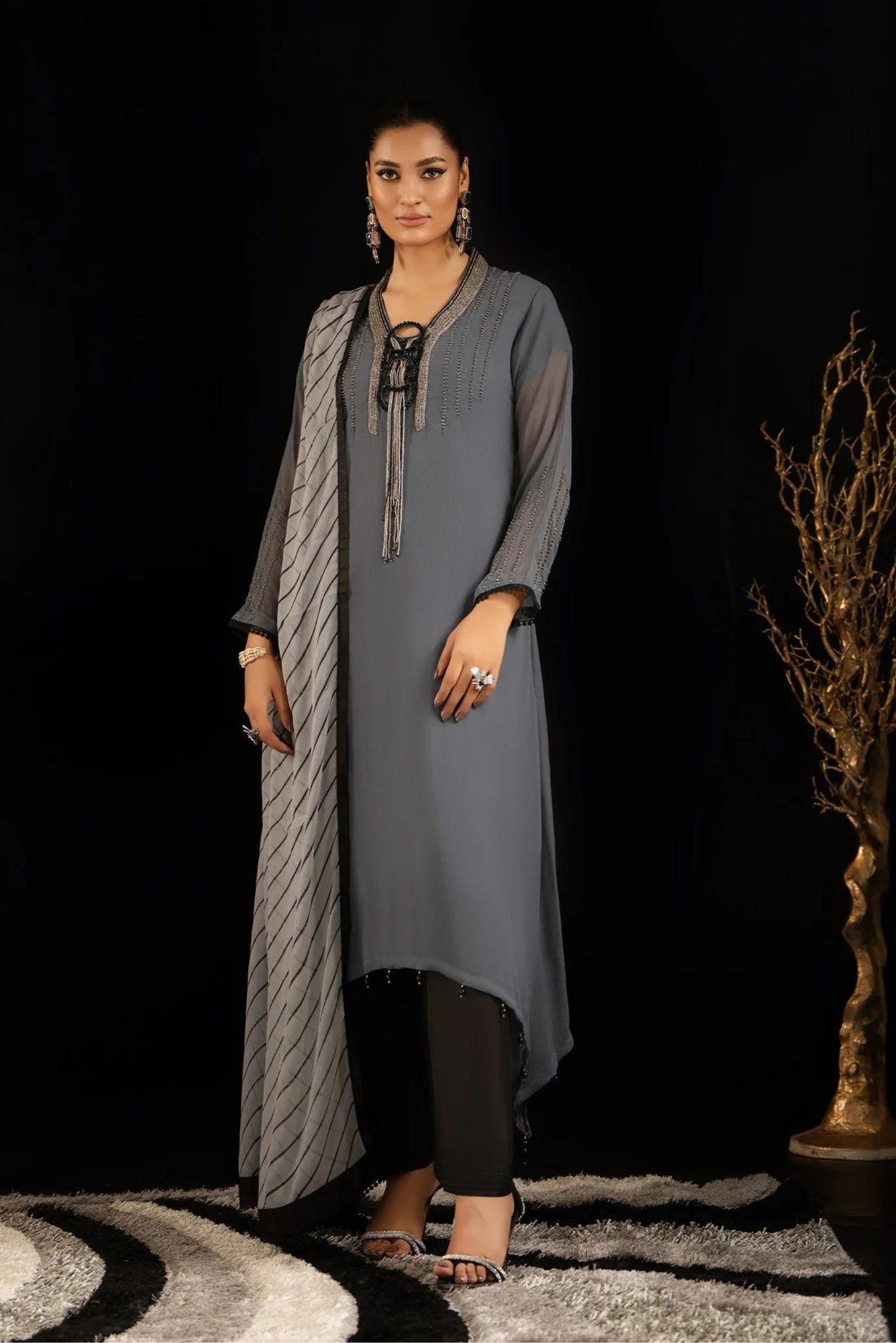 $169.99 AUDGrey Black Katan Embroidered Pakistani Readymade Outfit