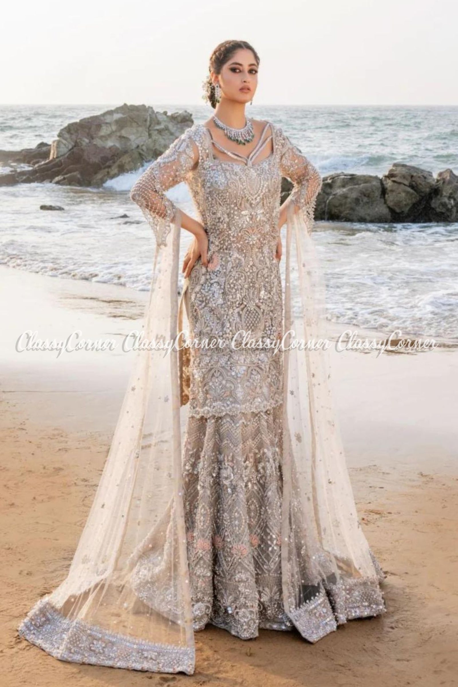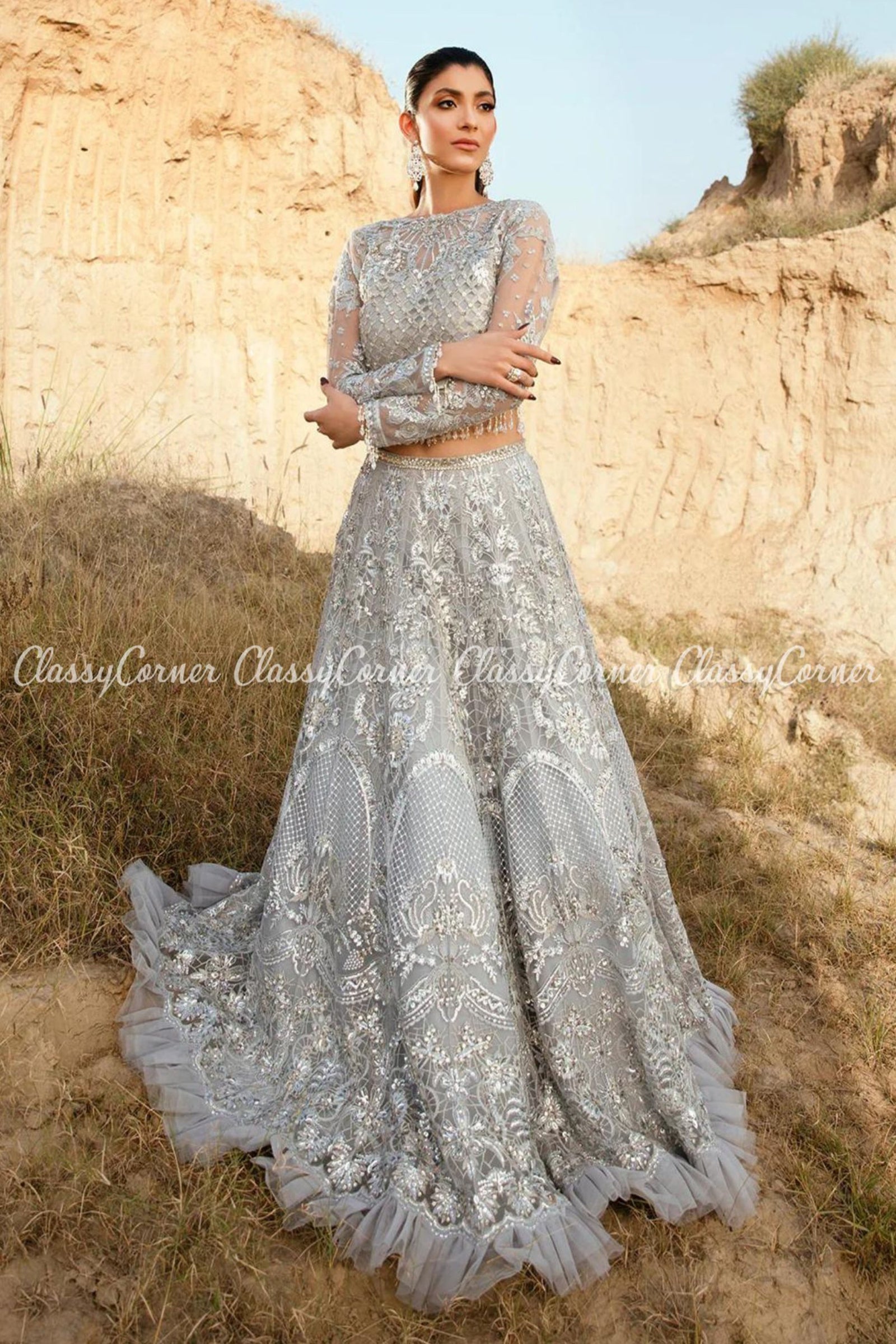 Grey Net Embellished Bridal Wear Lehenga Outfit