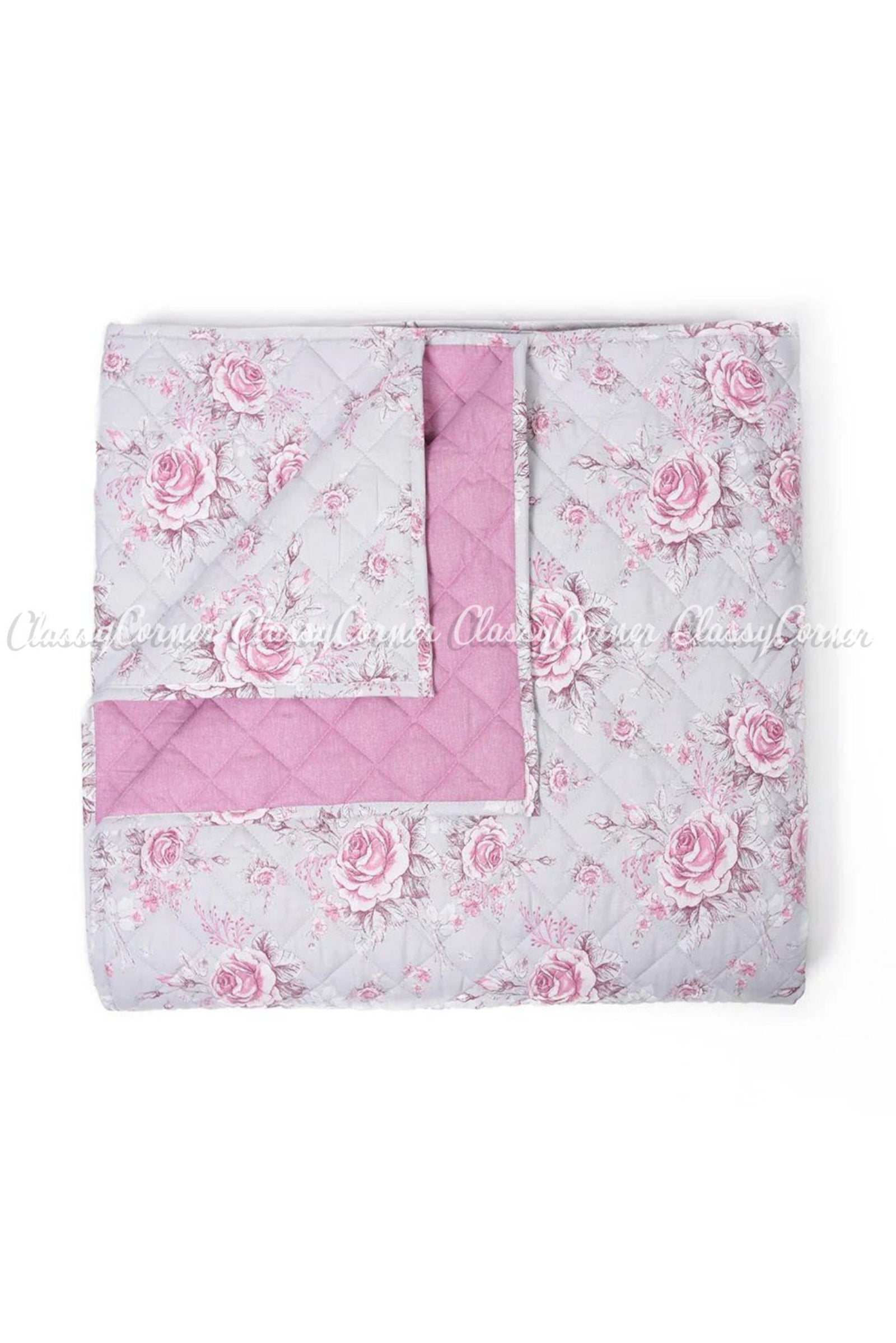 Sold OutGrey Pink Floral Print Cotton Bedspread Set