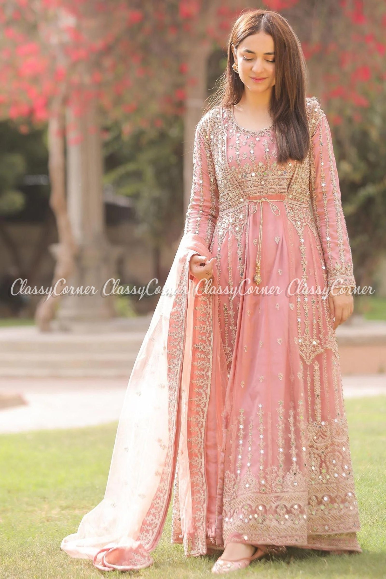 $309.99 AUDLight Pink Net Embroidered Wedding Wear Gown
