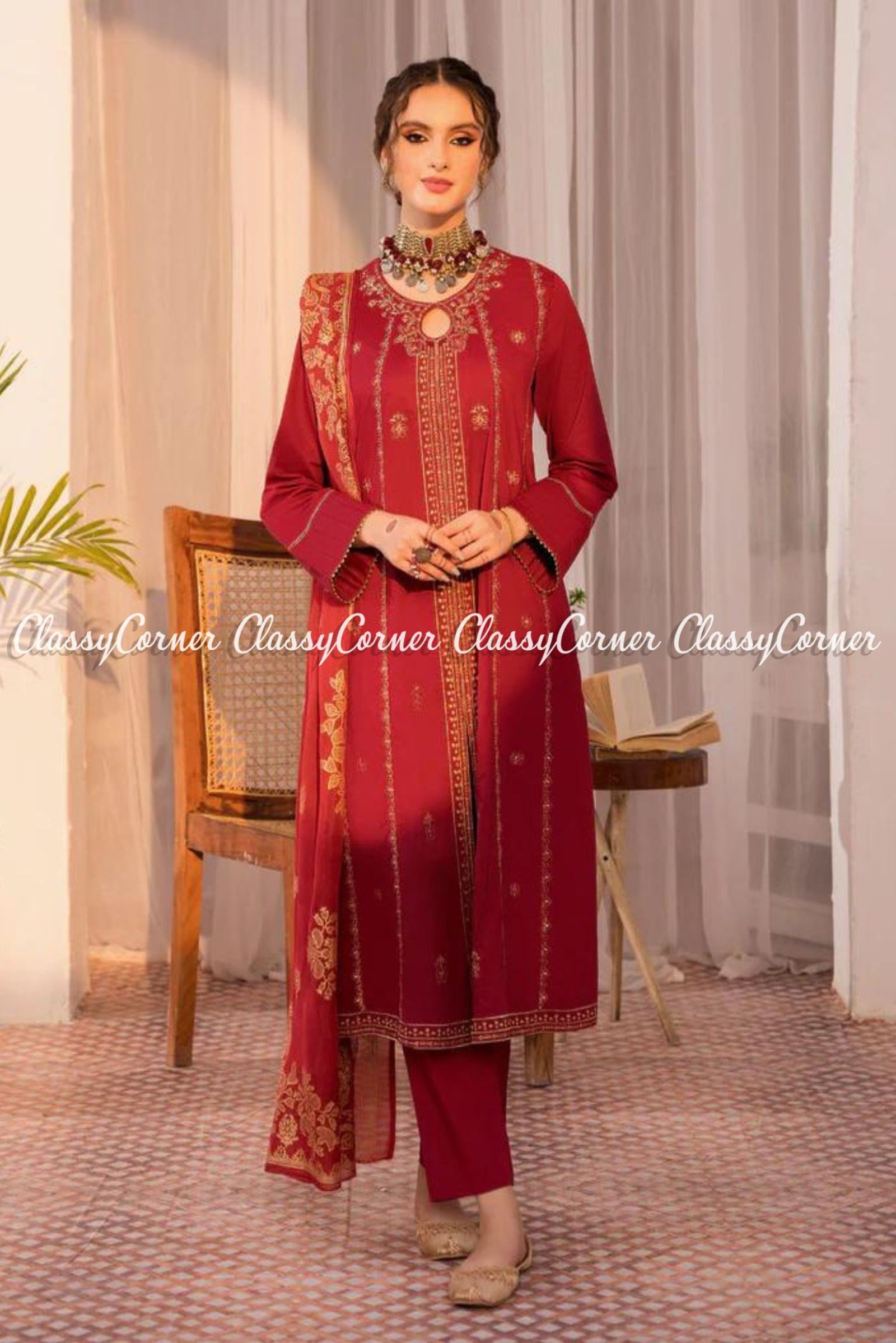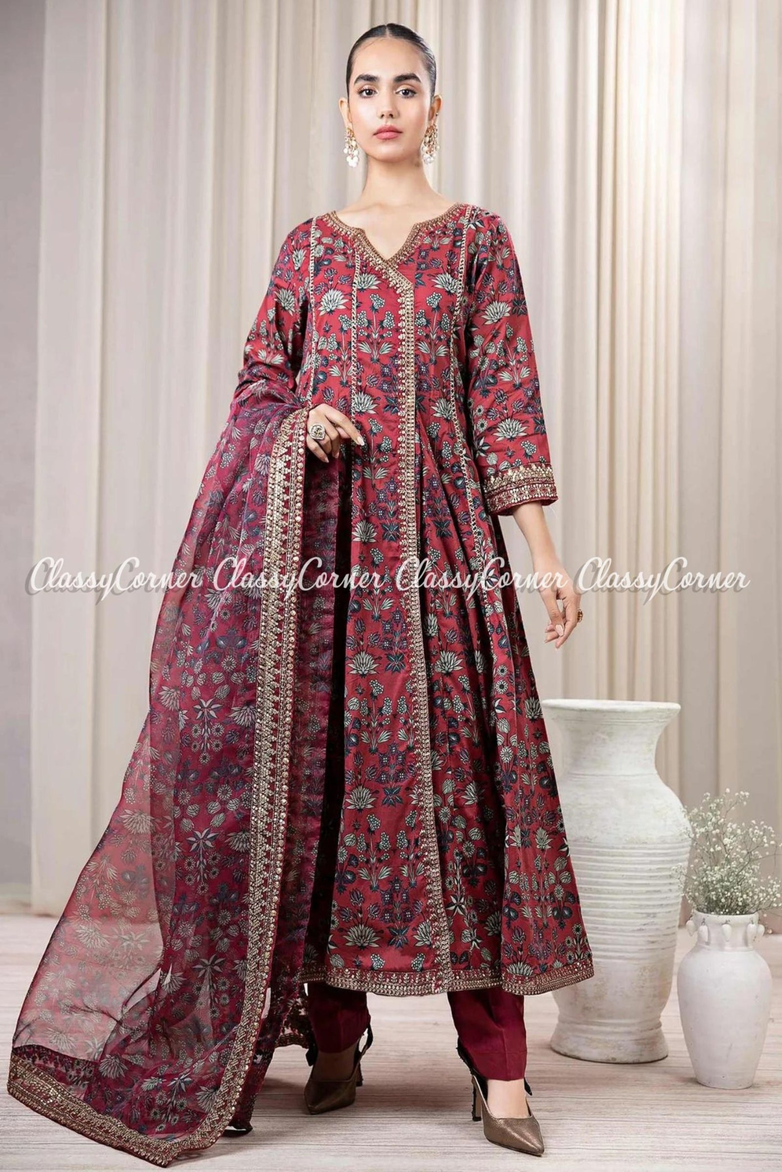 $239.99 AUDMaroon Khaddi Silk Party Wear Salwar Kameez
