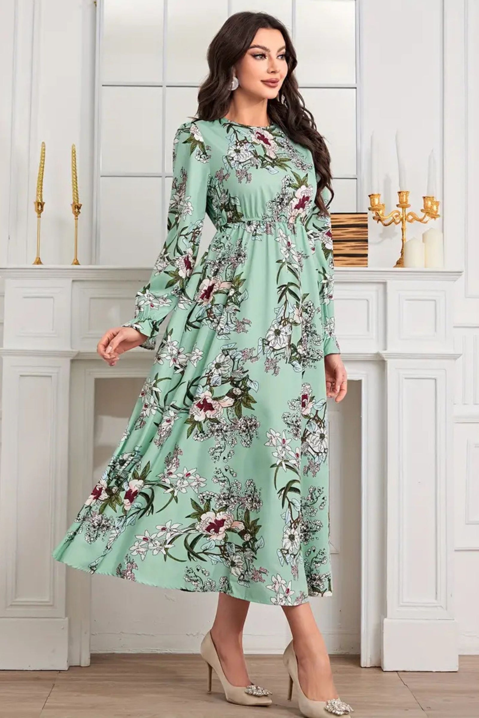$619.99 AUDPastel Green Floral Printed Modest Dress