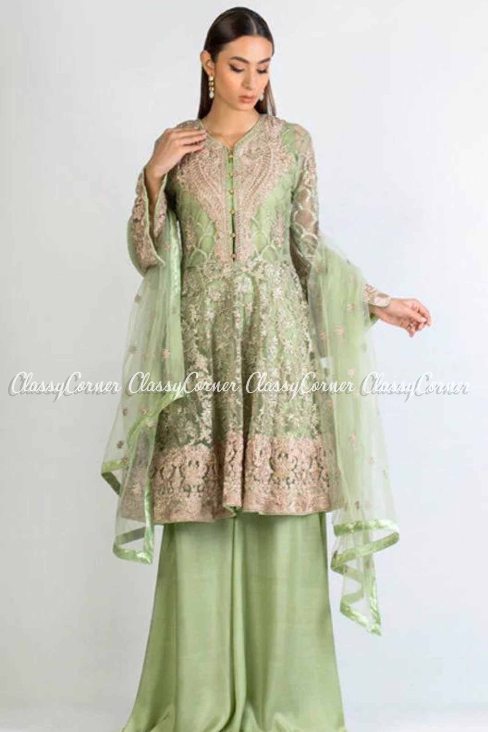 $634.99 AUDPastel Green Net Embellished Readymade Outfit