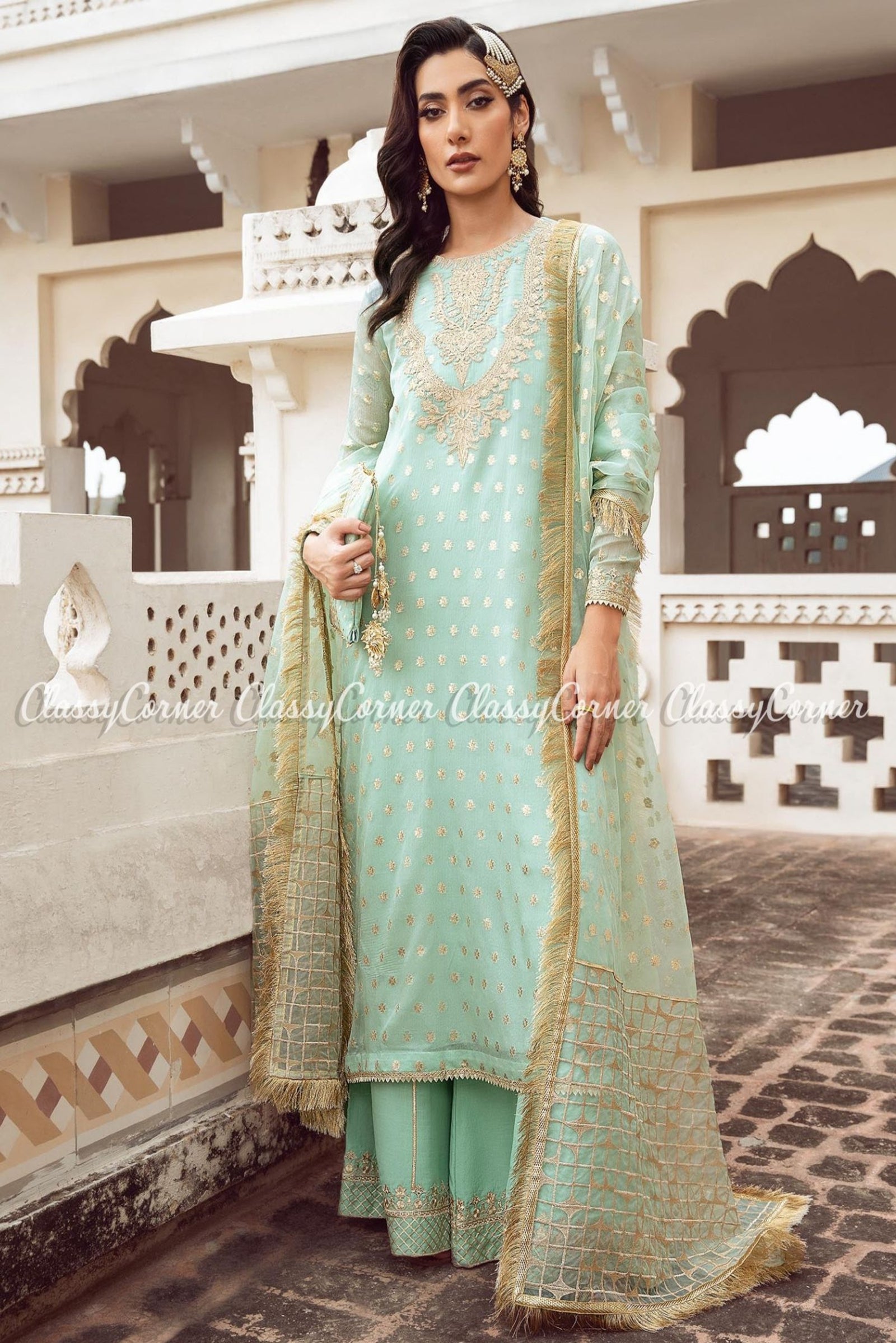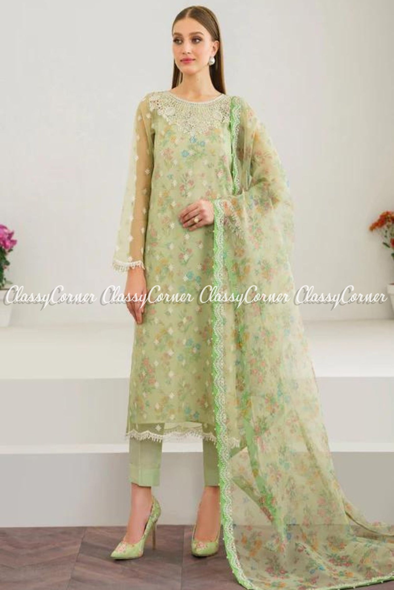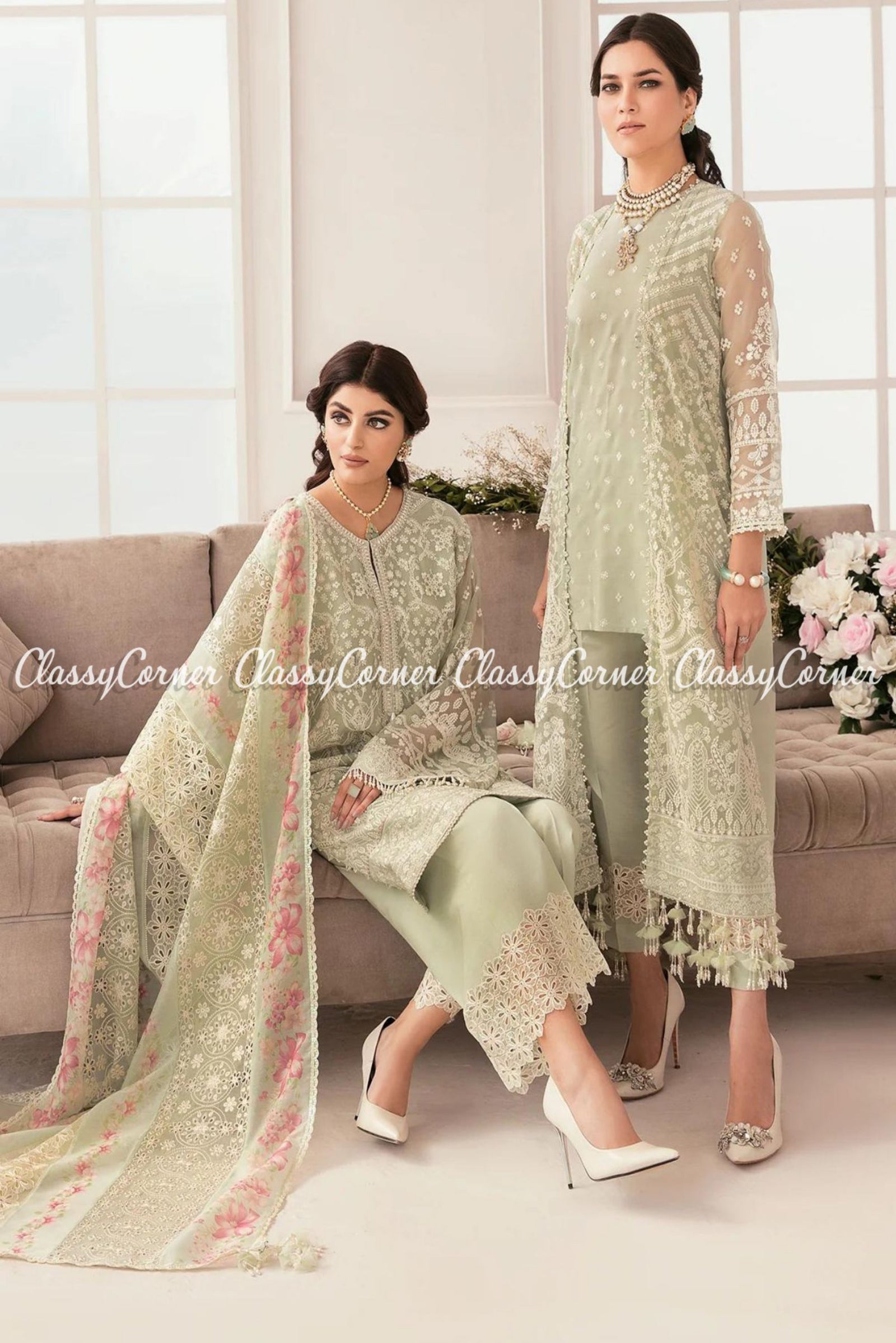 $599.99 AUDPastel Green Pink Net Embroidered Pakistani Salwar Kameez Outfits