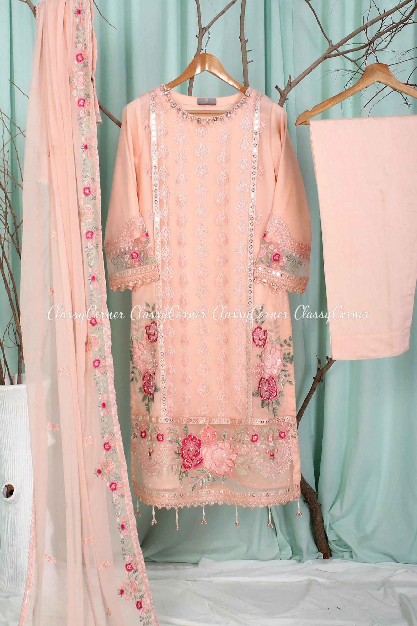 $534.99 AUDPastel Peach Organza Embroidered Pakistani Salwar Kameez