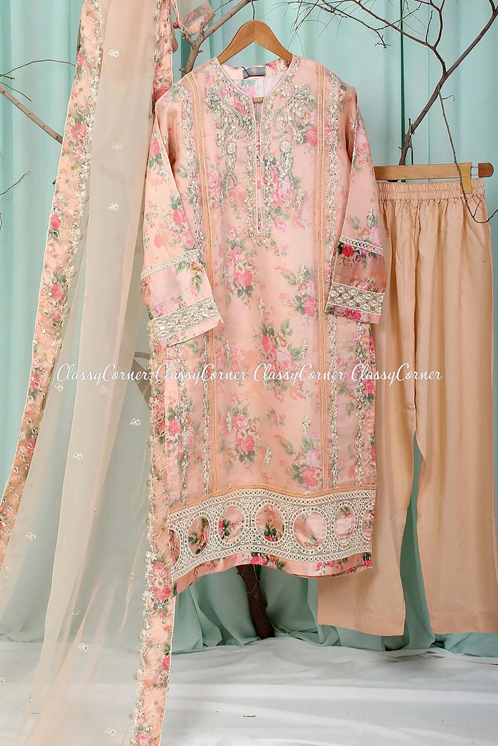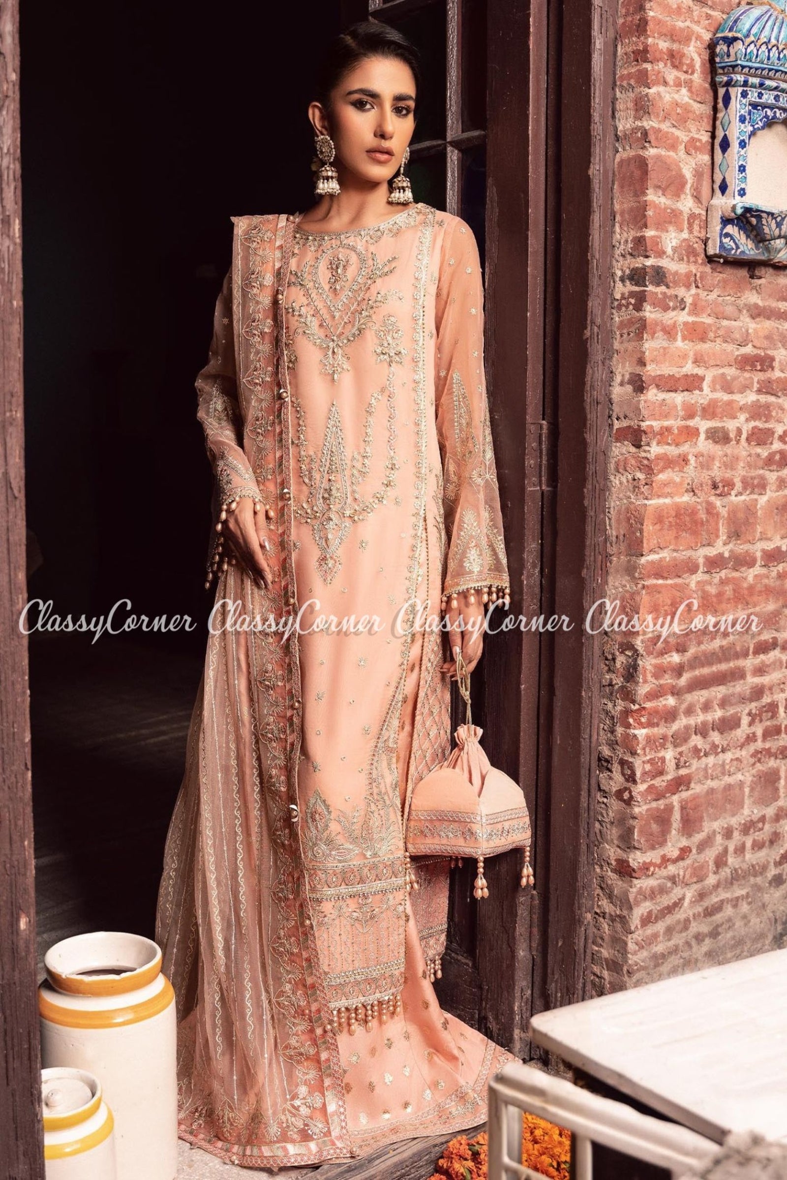 $144.99 AUD $199.99 AUDPeach Organza Pakistani Wedding Wear Outfit