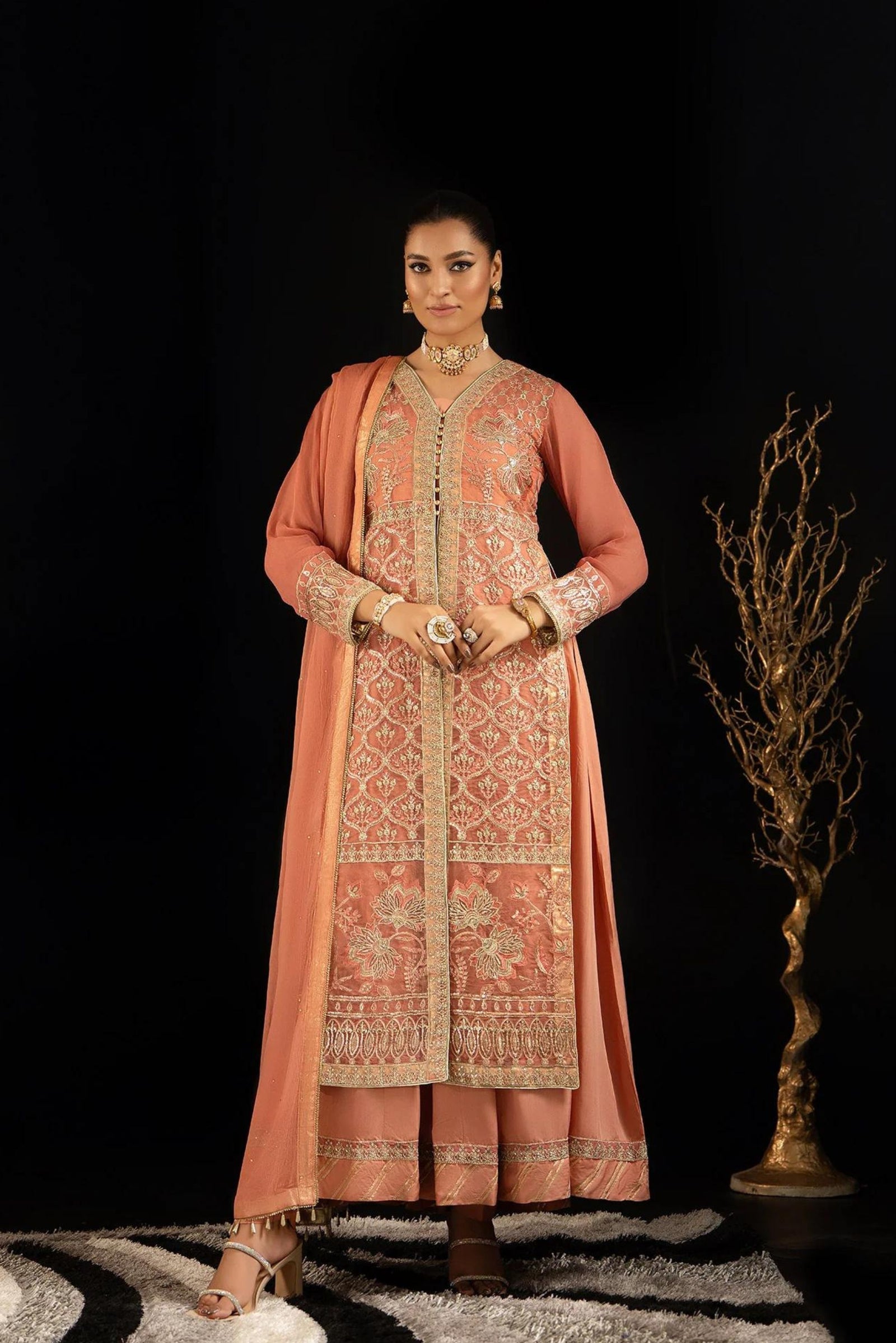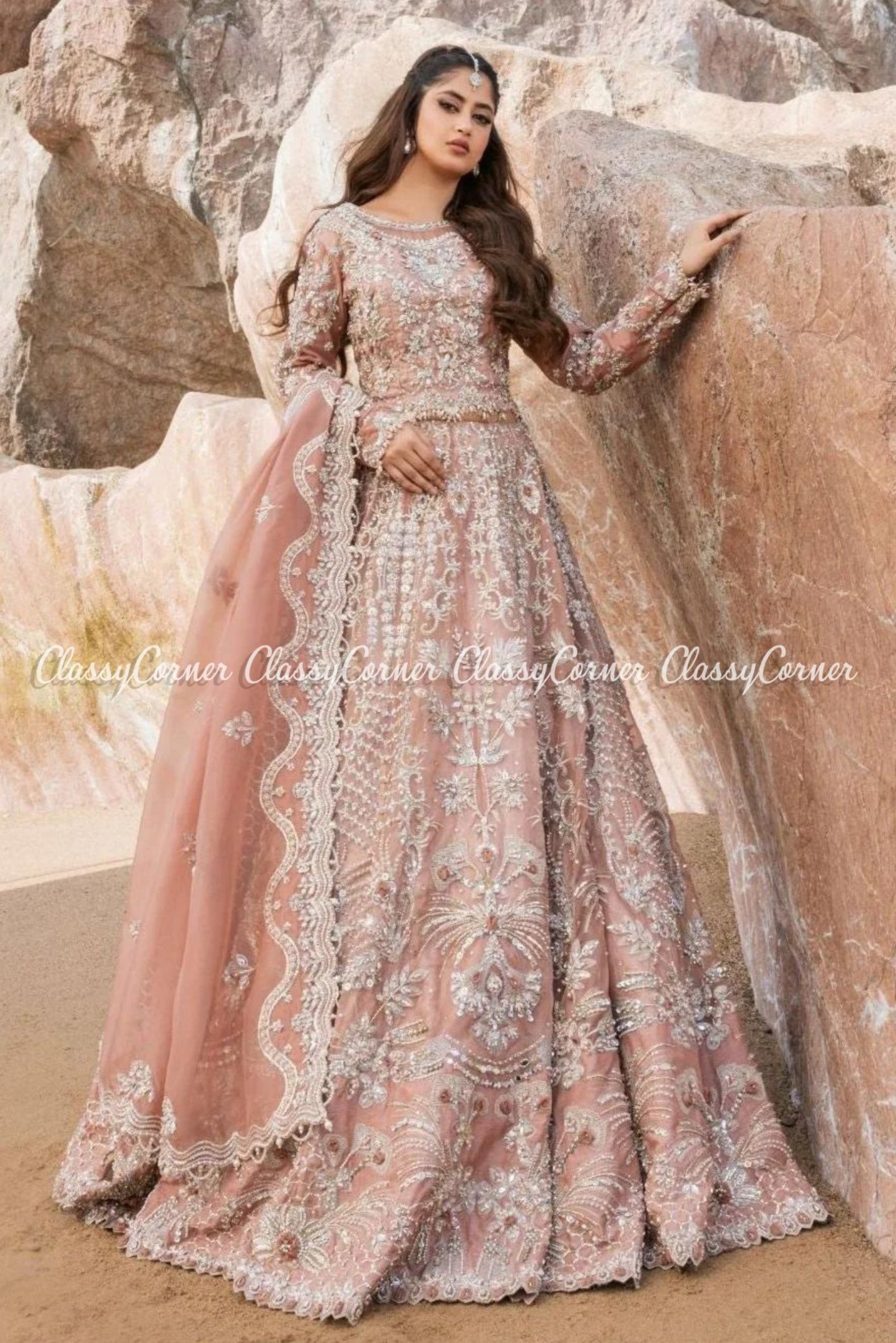 $7,224.99 AUDPeach Pink Net Embroidered Frock Outfit