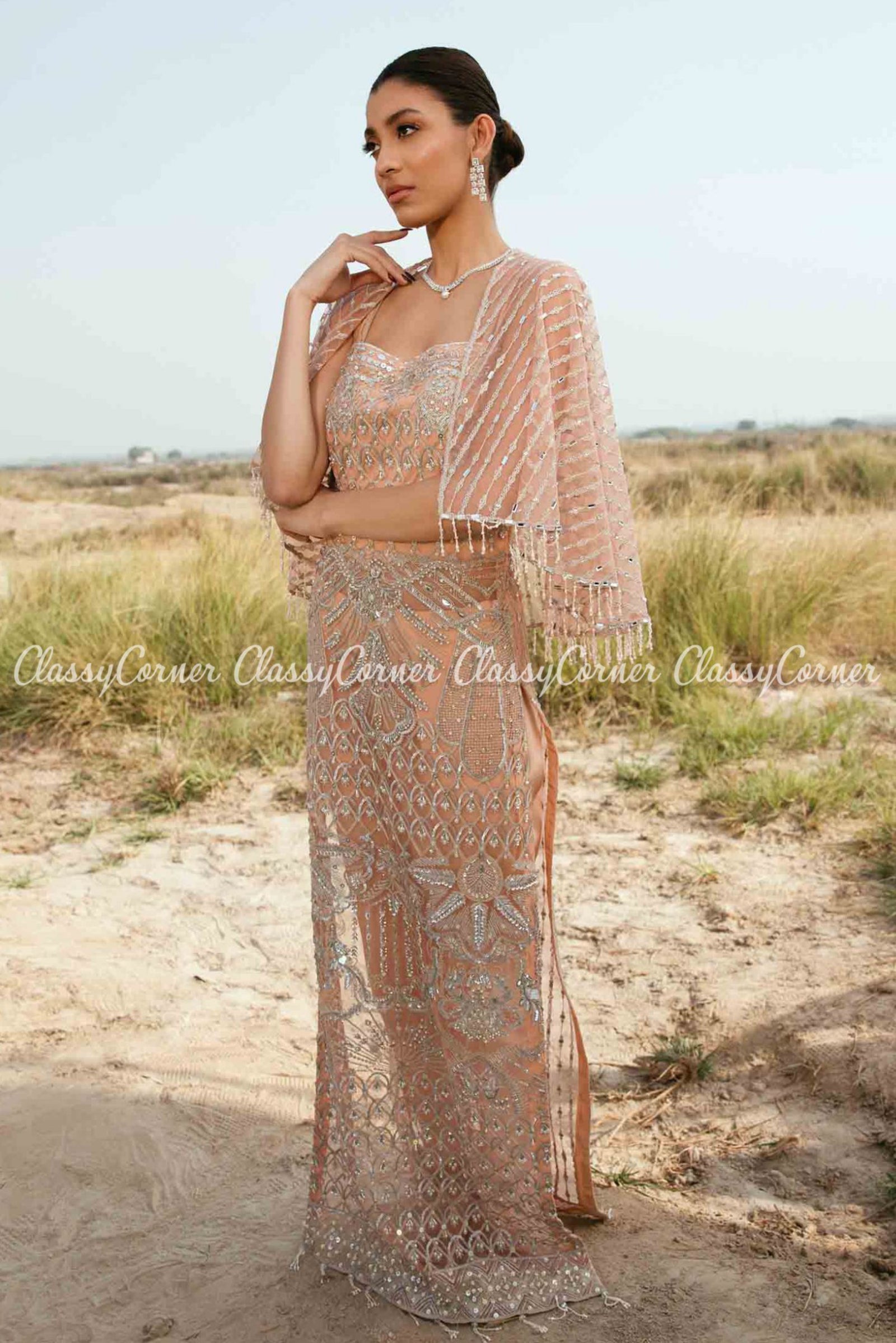 $9.99 AUDPeach Silver Net Embellished Party Wear Outfit