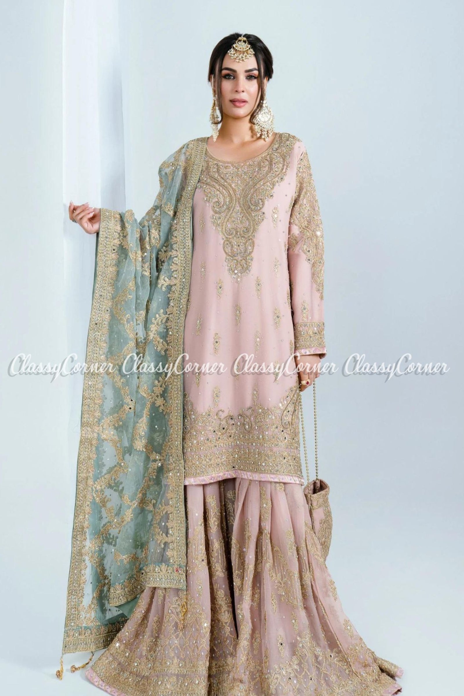 $434.99 AUD $574.99 AUDPink Chiffon Embroidered Salwar Kameez