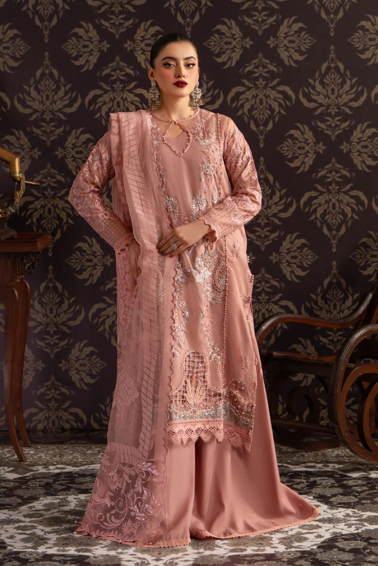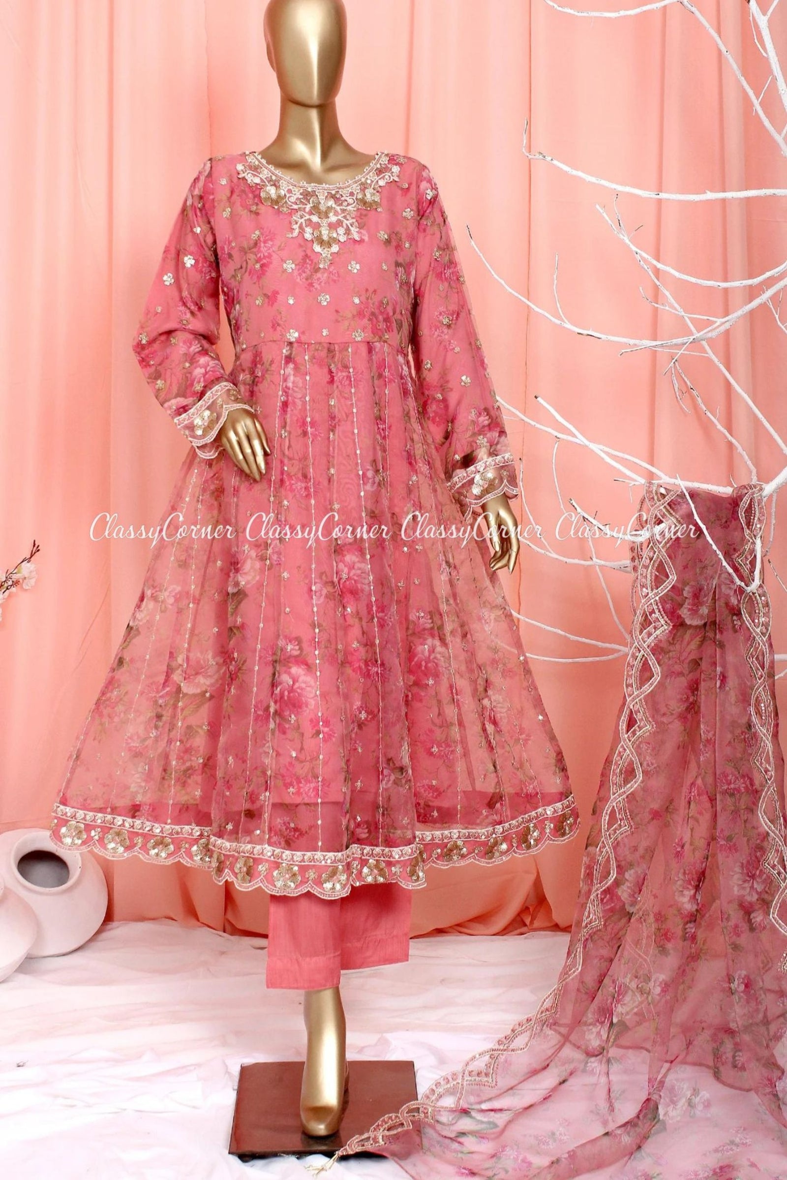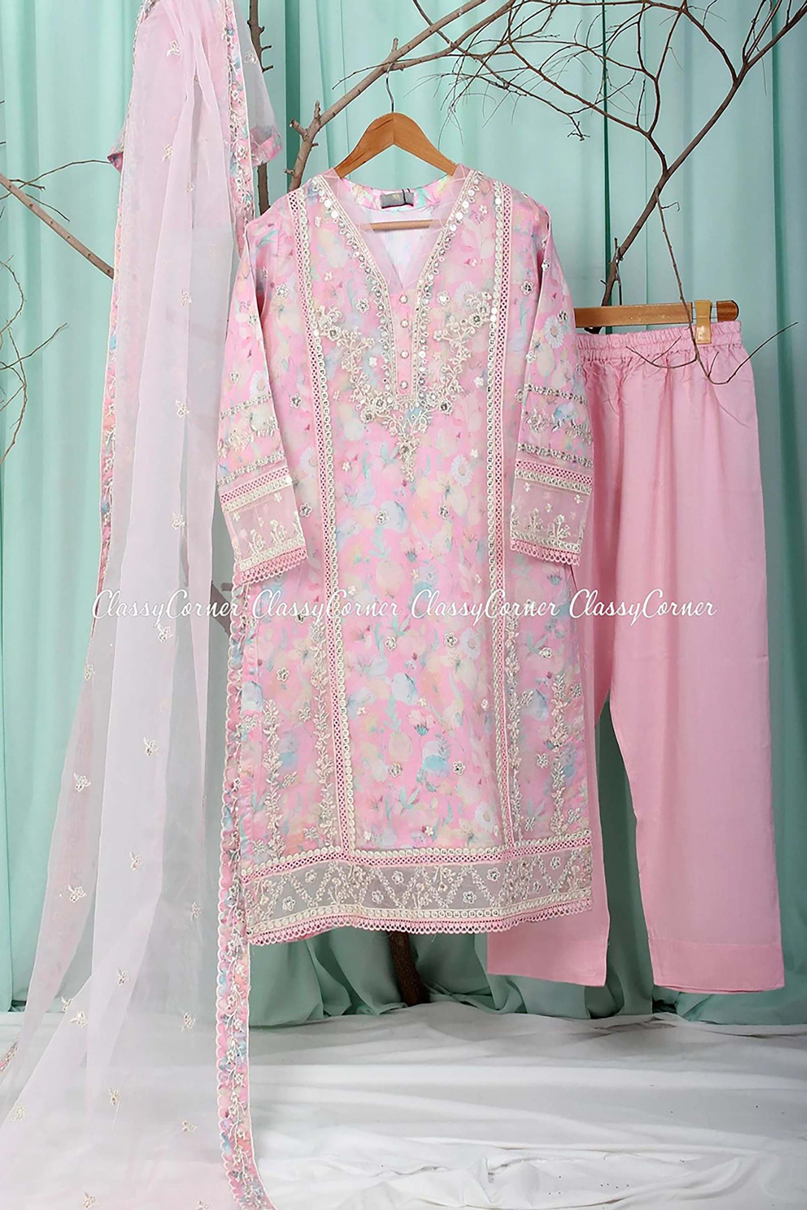 $284.99 AUDPink Organza Pakistani Shalwar Kameez