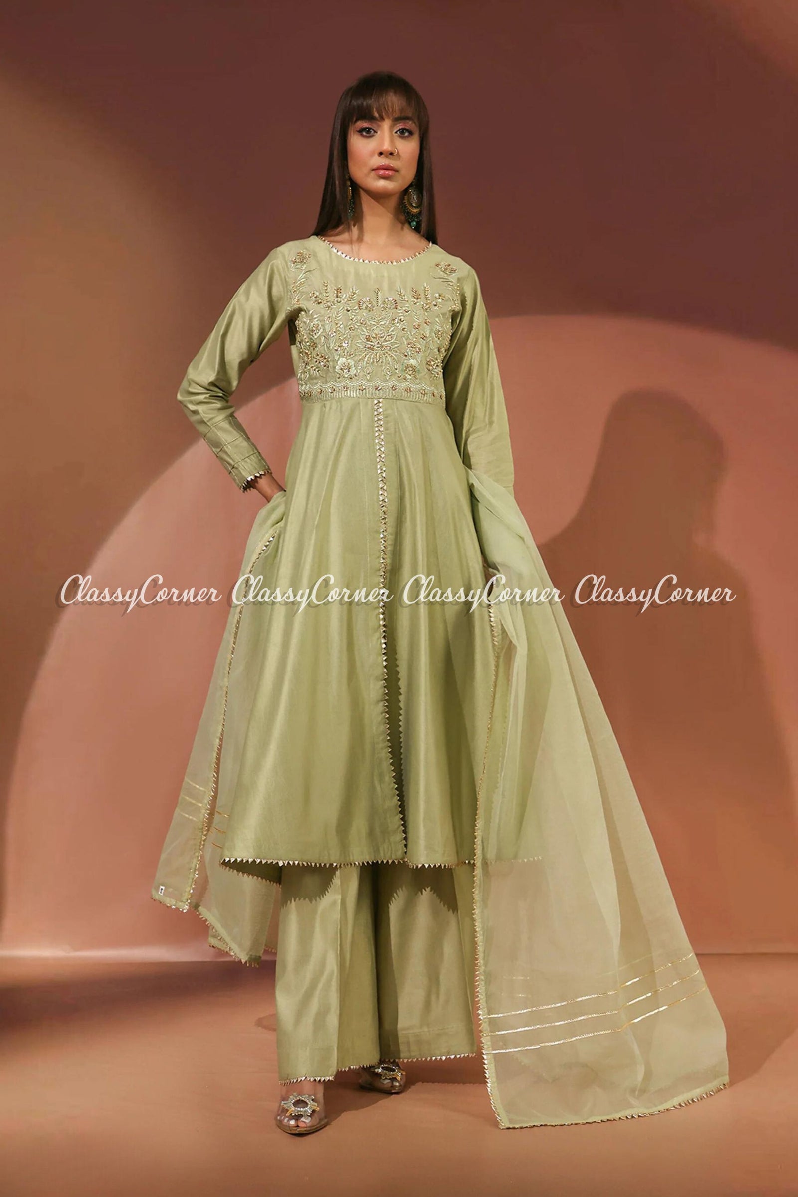 $659.99 AUD $729.99 AUDPista Green Till Embroidered Party Wear Maxi