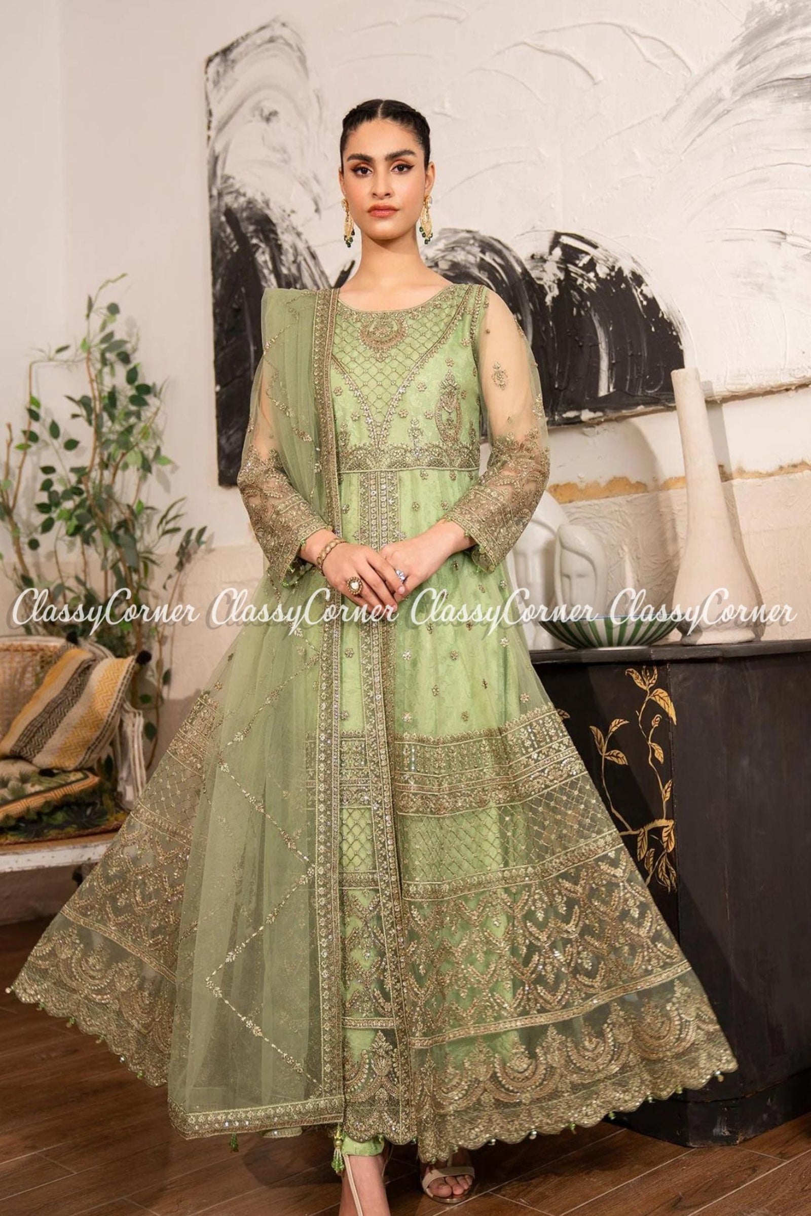 Sold OutPista Net Pakistani Bridal Gown Dress