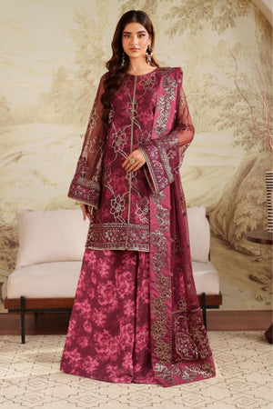 • Kameez/Gown: Sequins Embroidered Net, Printed Raw Silk Inner