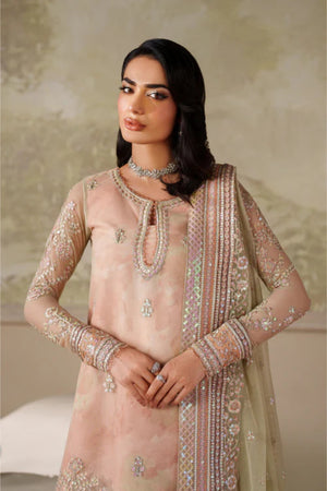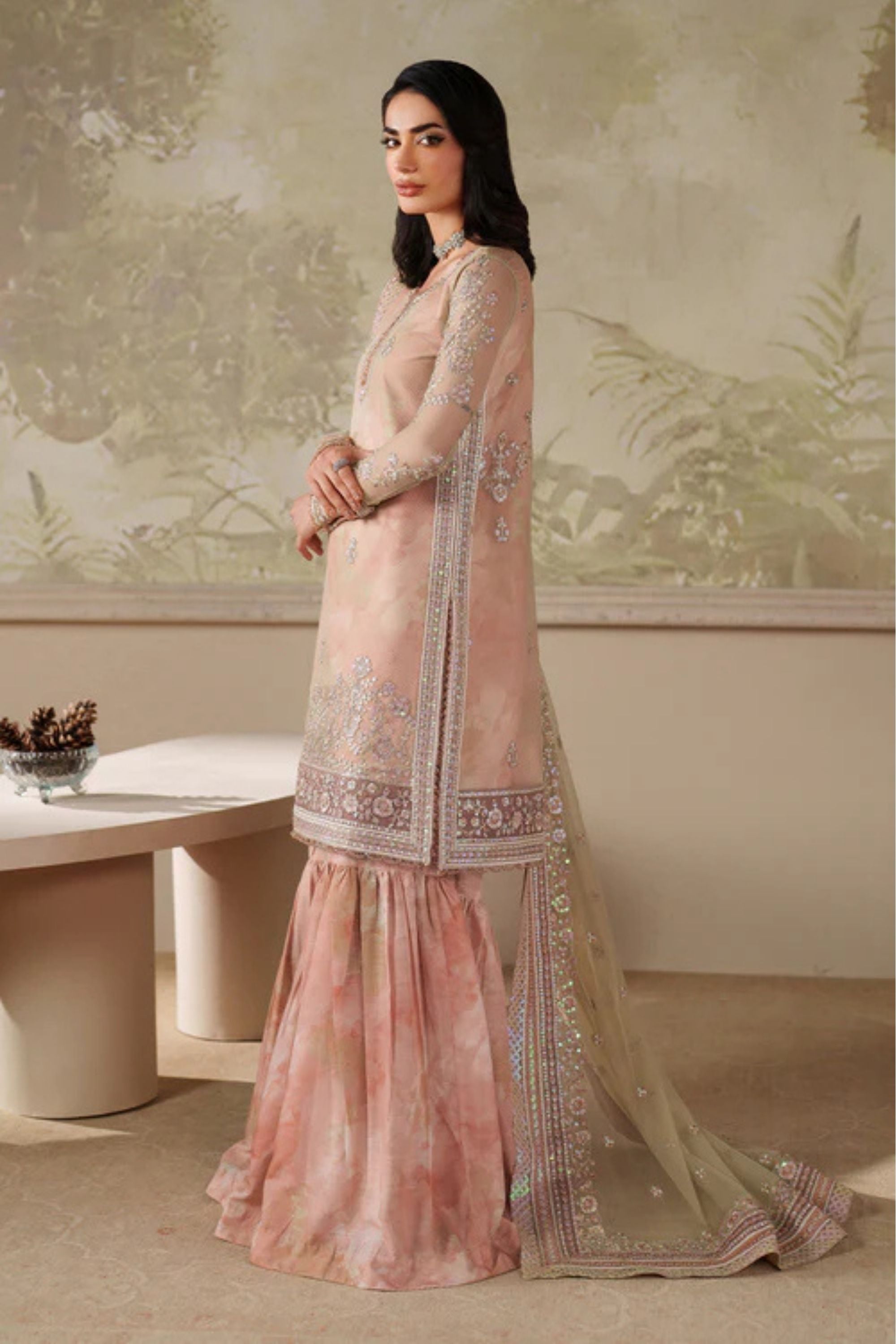 Kameez: Sequins Embroidered Net, Printed Raw Silk Inner
