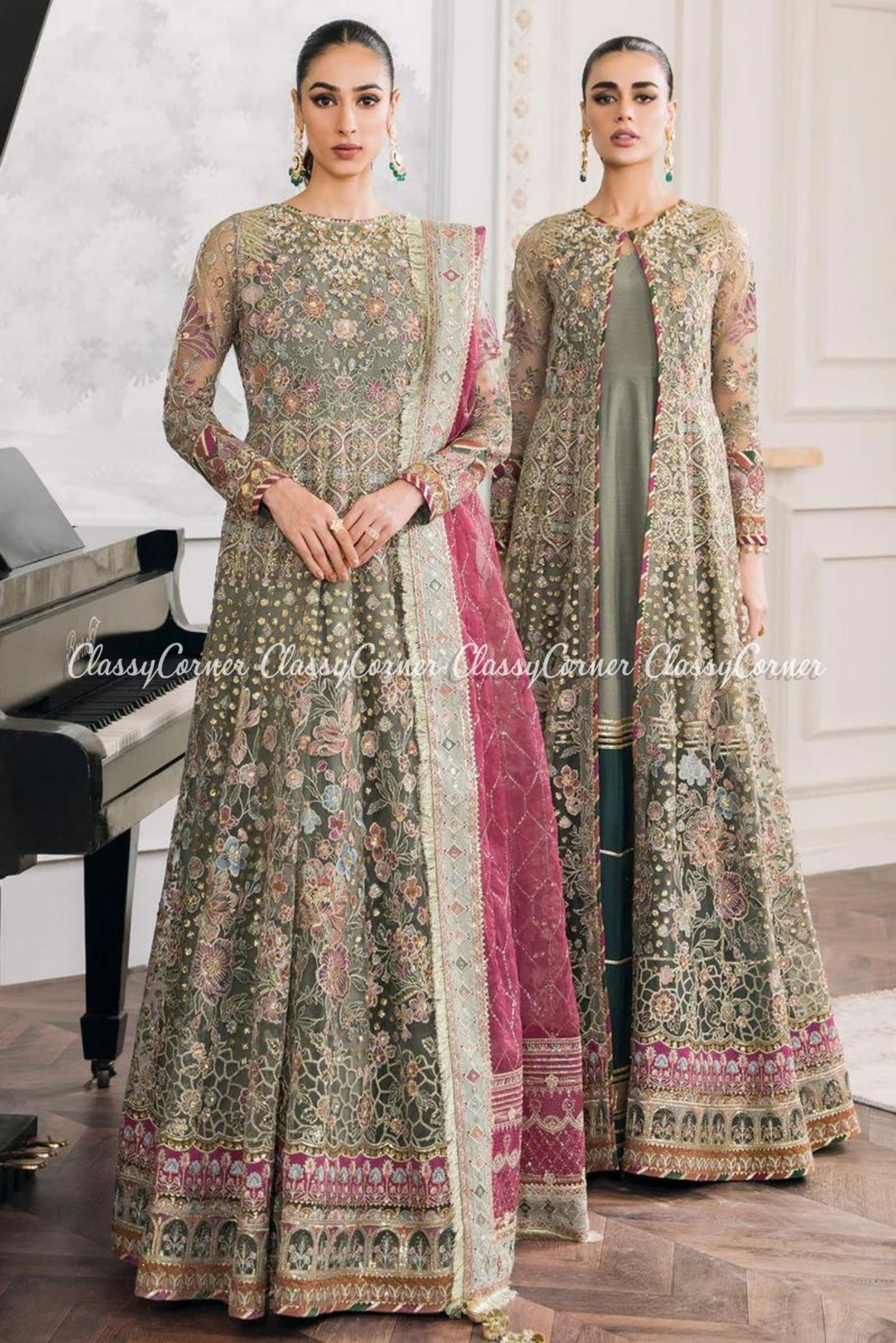 $639.99 AUDSage Green Multi Net Embroidered Party Wear Gowns