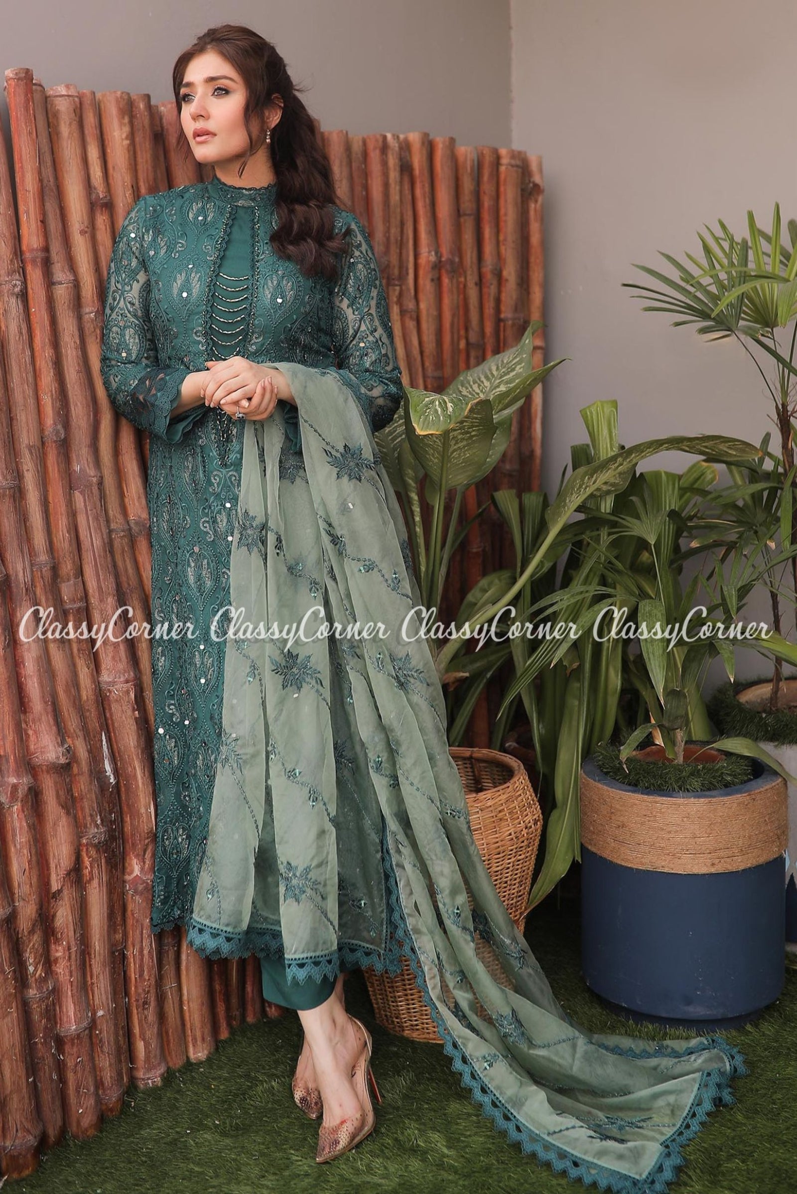 $344.99 AUDDark Green Net Embroidered Party Wear Gown