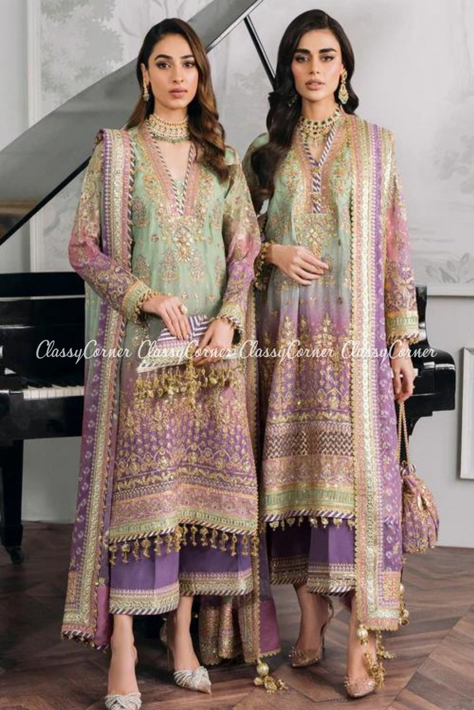 $344.99 AUDMint Purple Chiffon Embroidered Party Wear Suits
