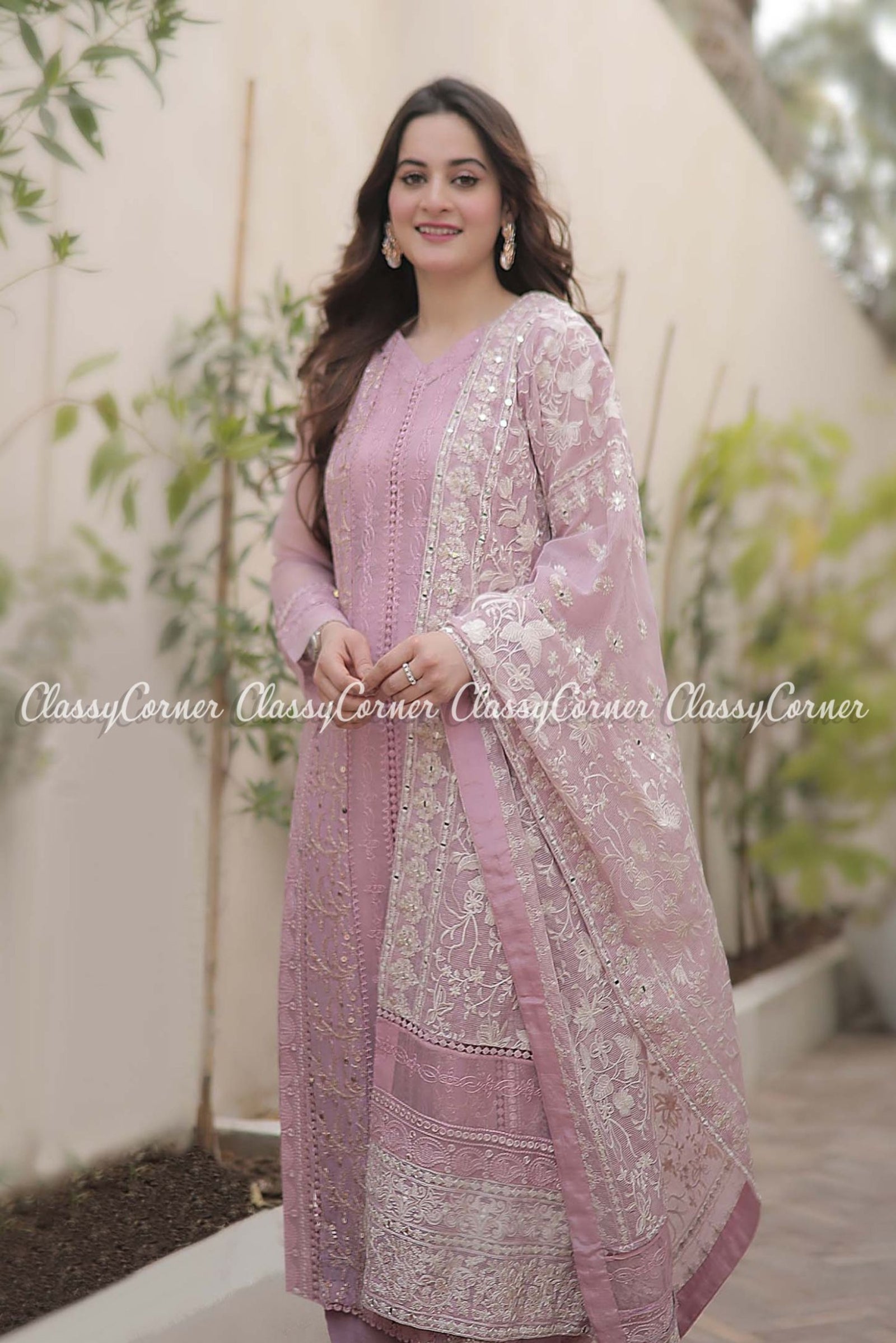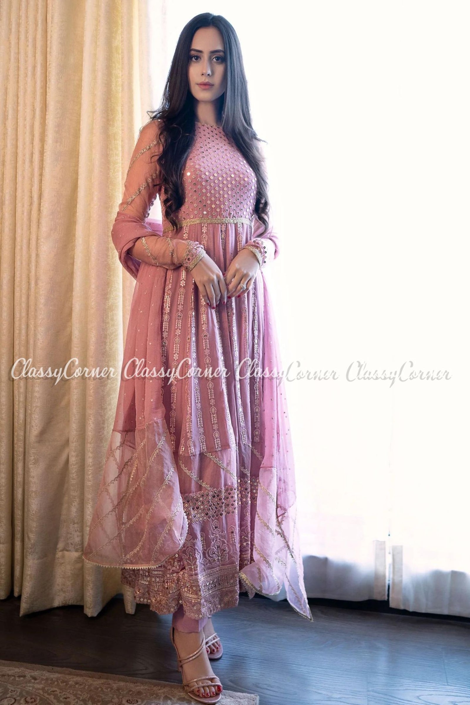 $279.99 AUDPakistani Mauve Pink Chiffon Wedding Wear Outfit