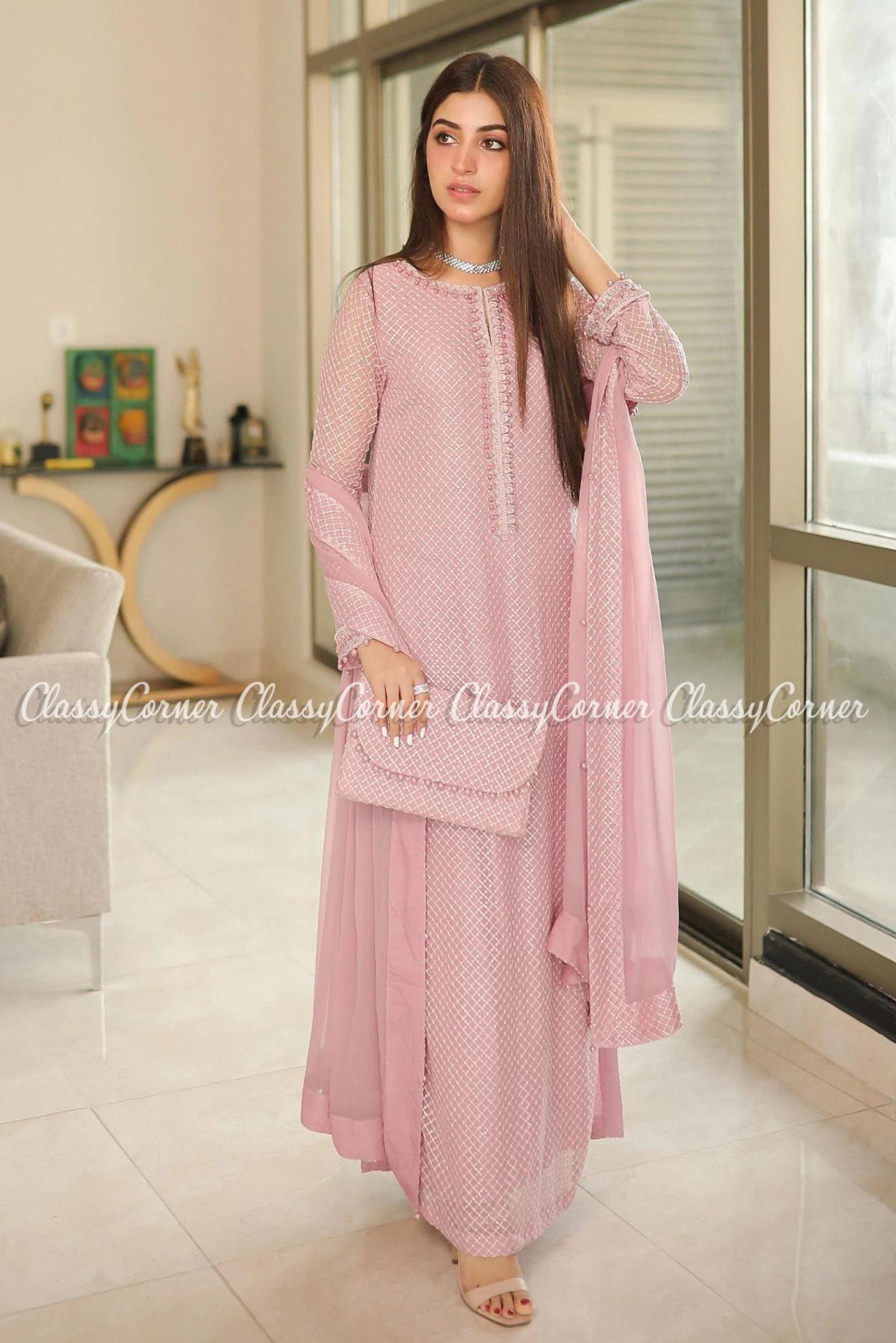 $679.99 AUD $909.99 AUDTea Pink Chiffon Party Wear Salwar Kameez