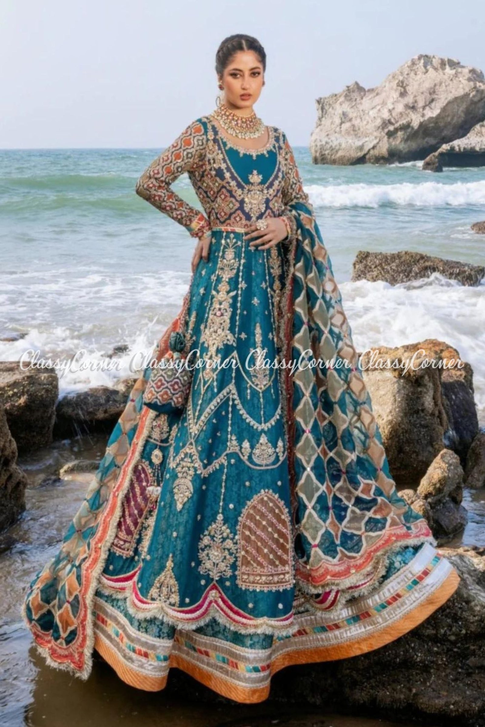 $464.99 AUD $689.99 AUDTeal Multi Chiffon Embellished Bridal Wear Gown