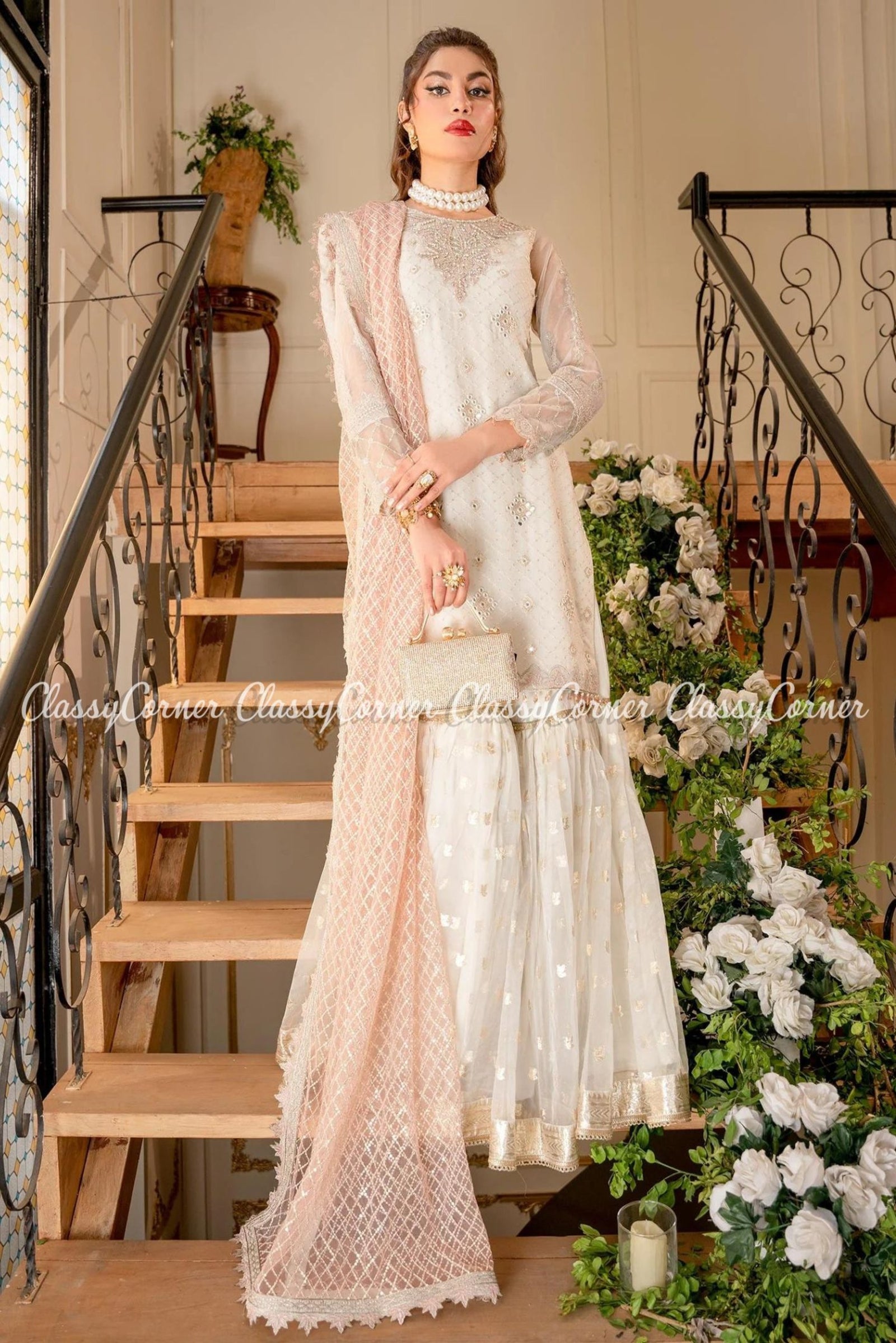 $739.99 AUD $919.99 AUDWhite Chiffon Bridal Wear Readymade Gharara