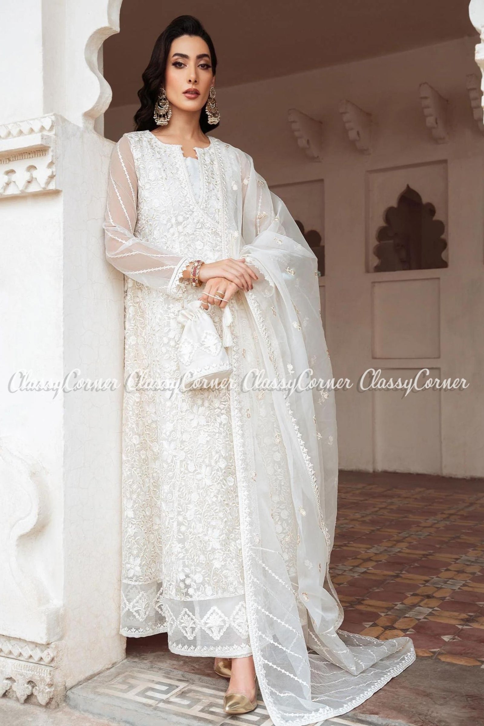 $2,409.99 AUDWhite Organza Pakistani Party Wear 3PC Outfit