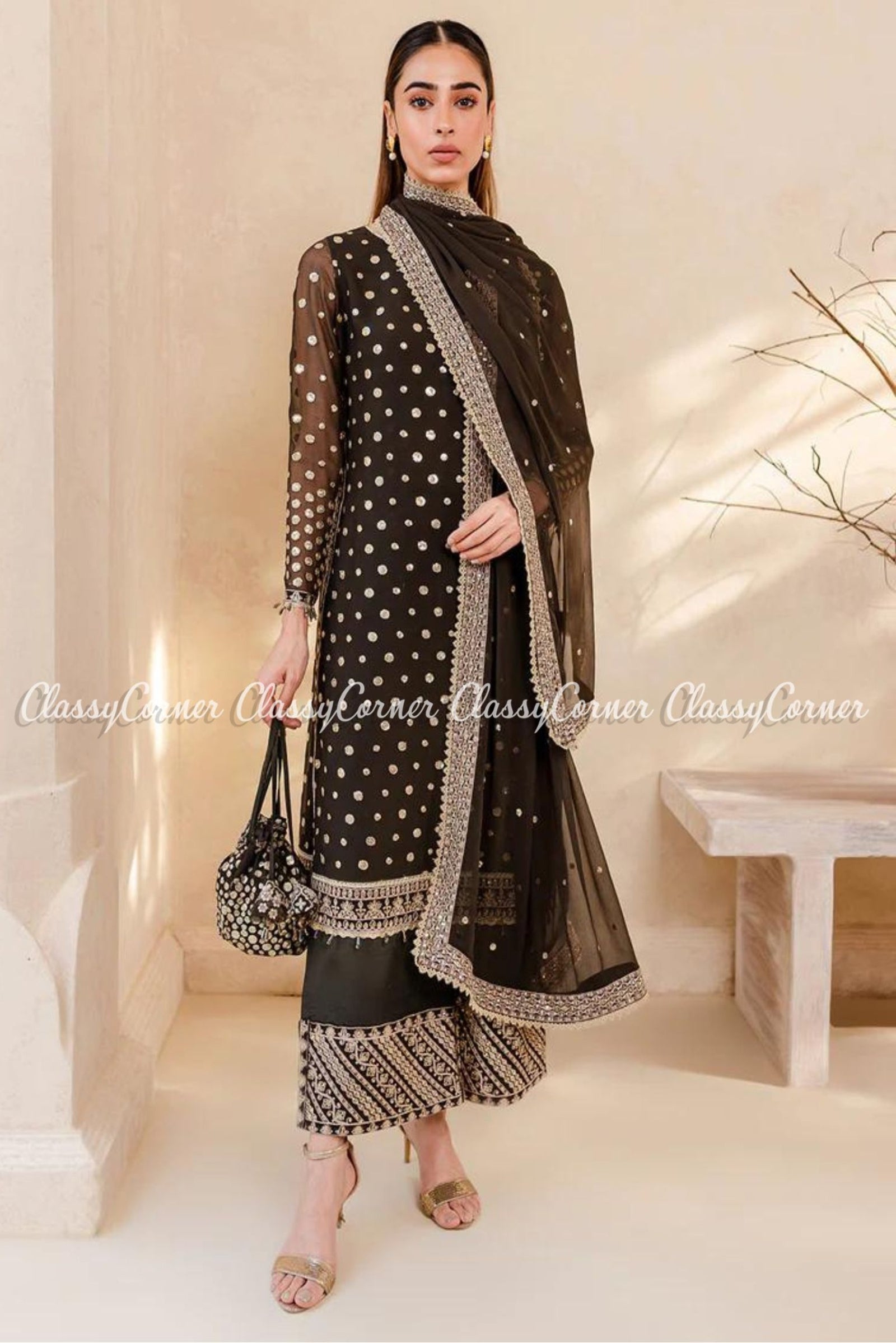 Black Chiffon Pakistani Party Wear Salwar Kameez