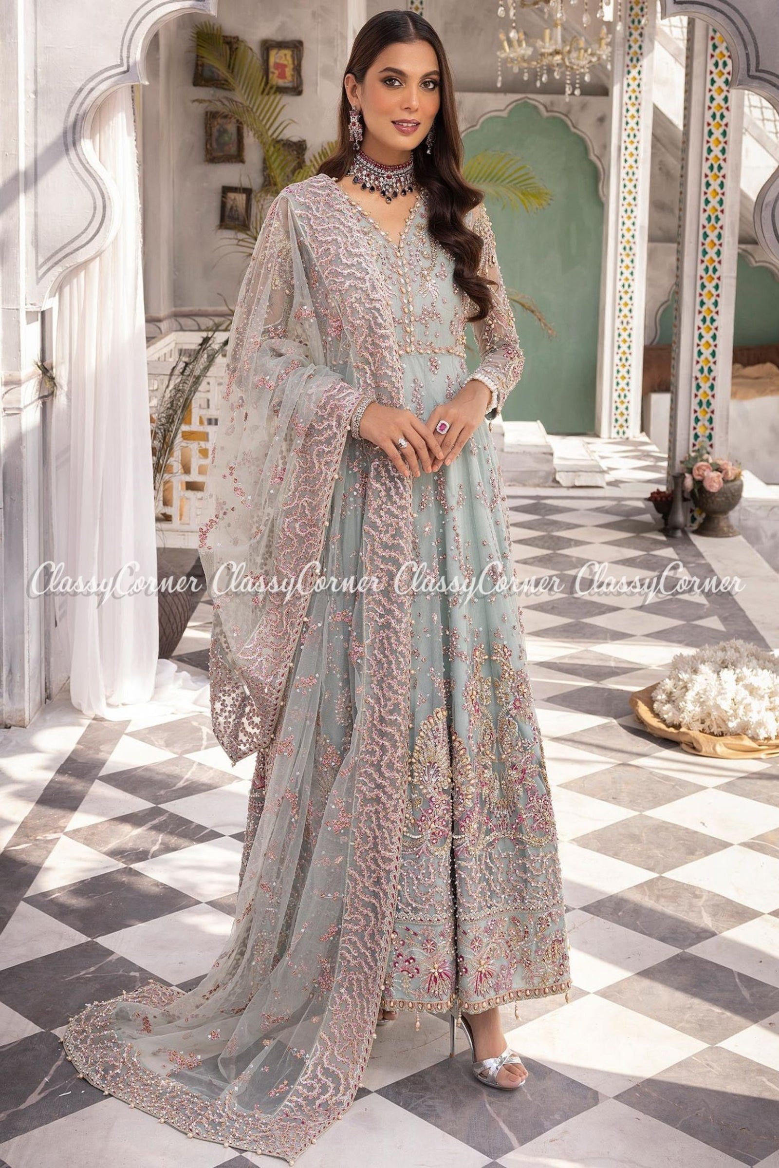 $919.99 AUDBlue Purple Net Embroidered Party Wear Maxi