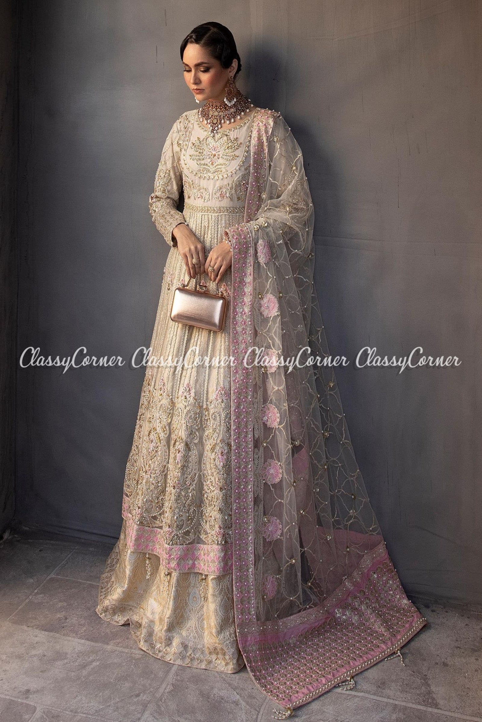$274.99 AUDCream Pink Net Embroidered Bridal Wear Gown