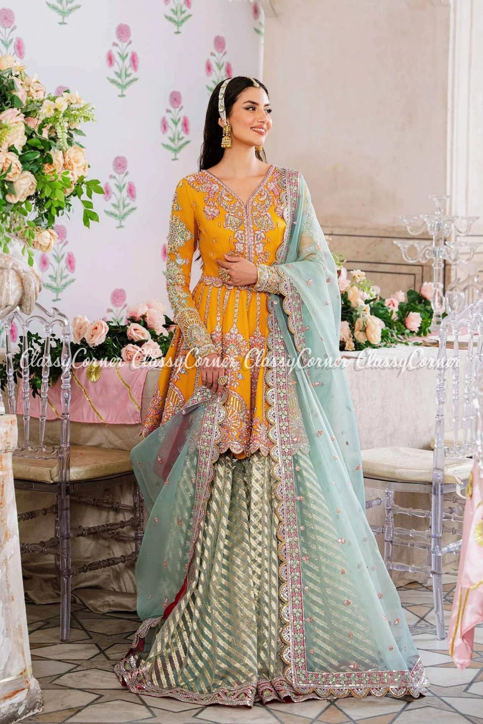 $664.99 AUDMustard Mint Net Embellished Wedding Wear Gharara