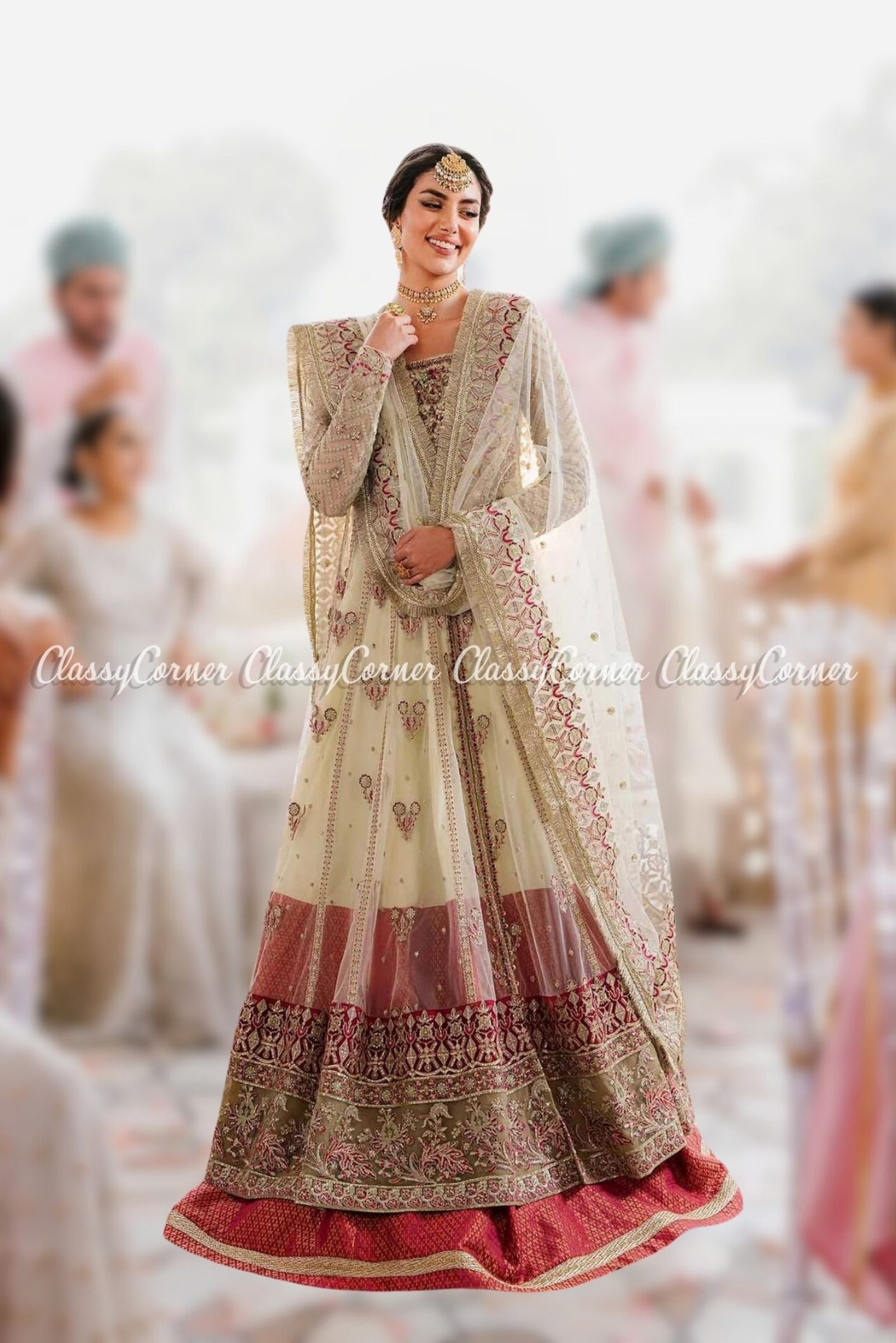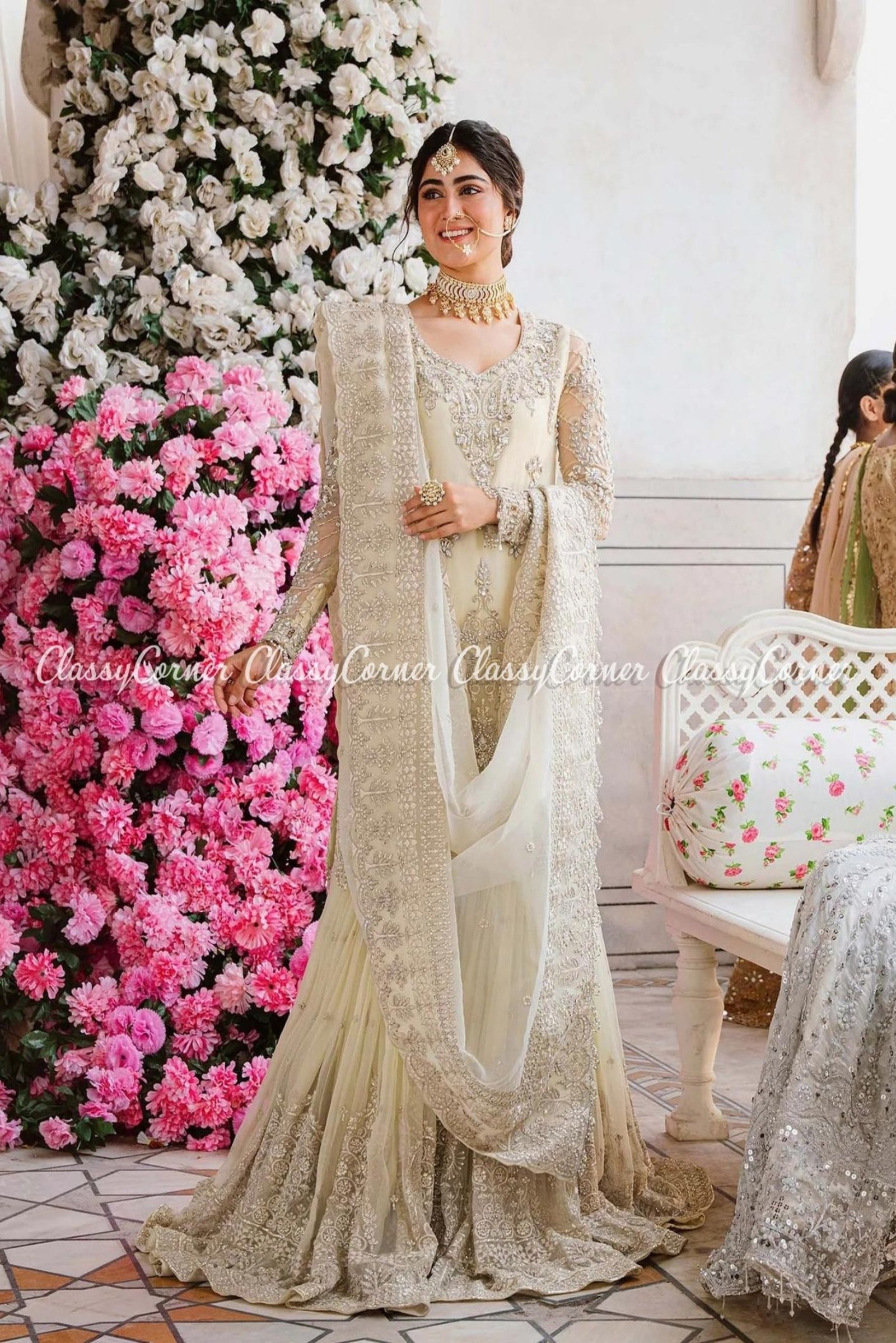 $919.99 AUDOff White Organza Embellished Bridal Wear Sharara