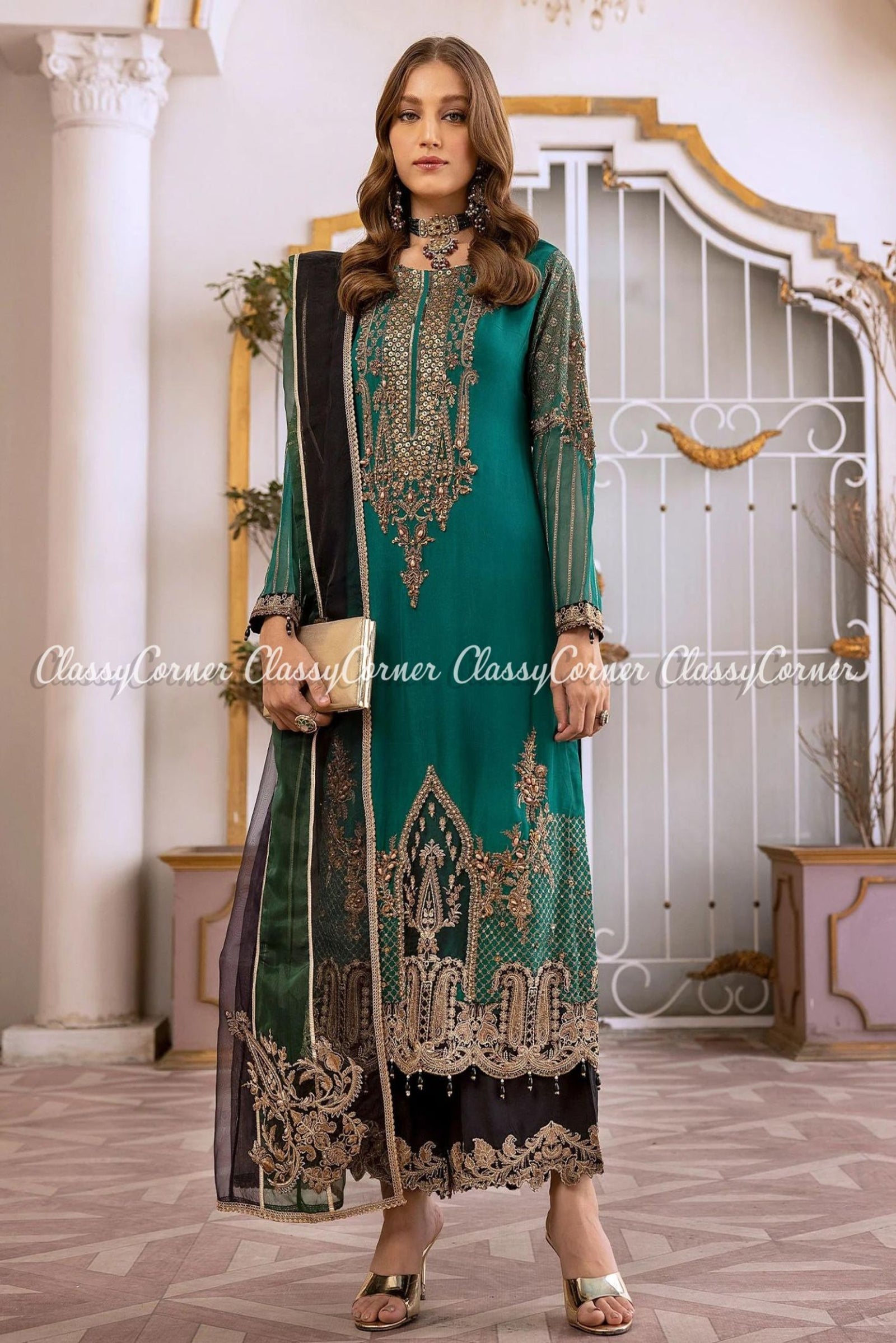$284.99 AUDDark Green Chiffon Embroidered Party Wear Suit