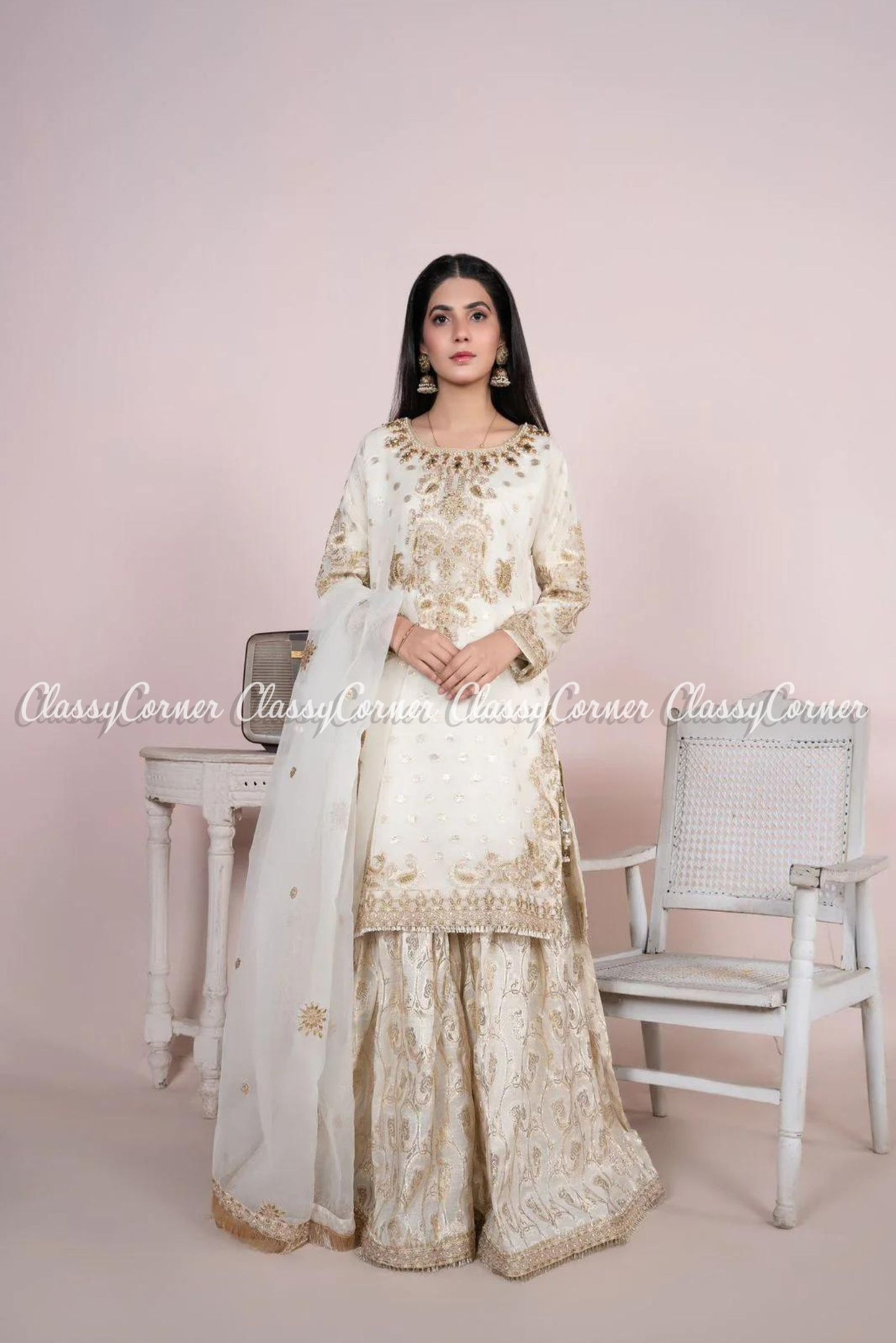 $564.99 AUDWhite Golden Organza Party Wear Gharara
