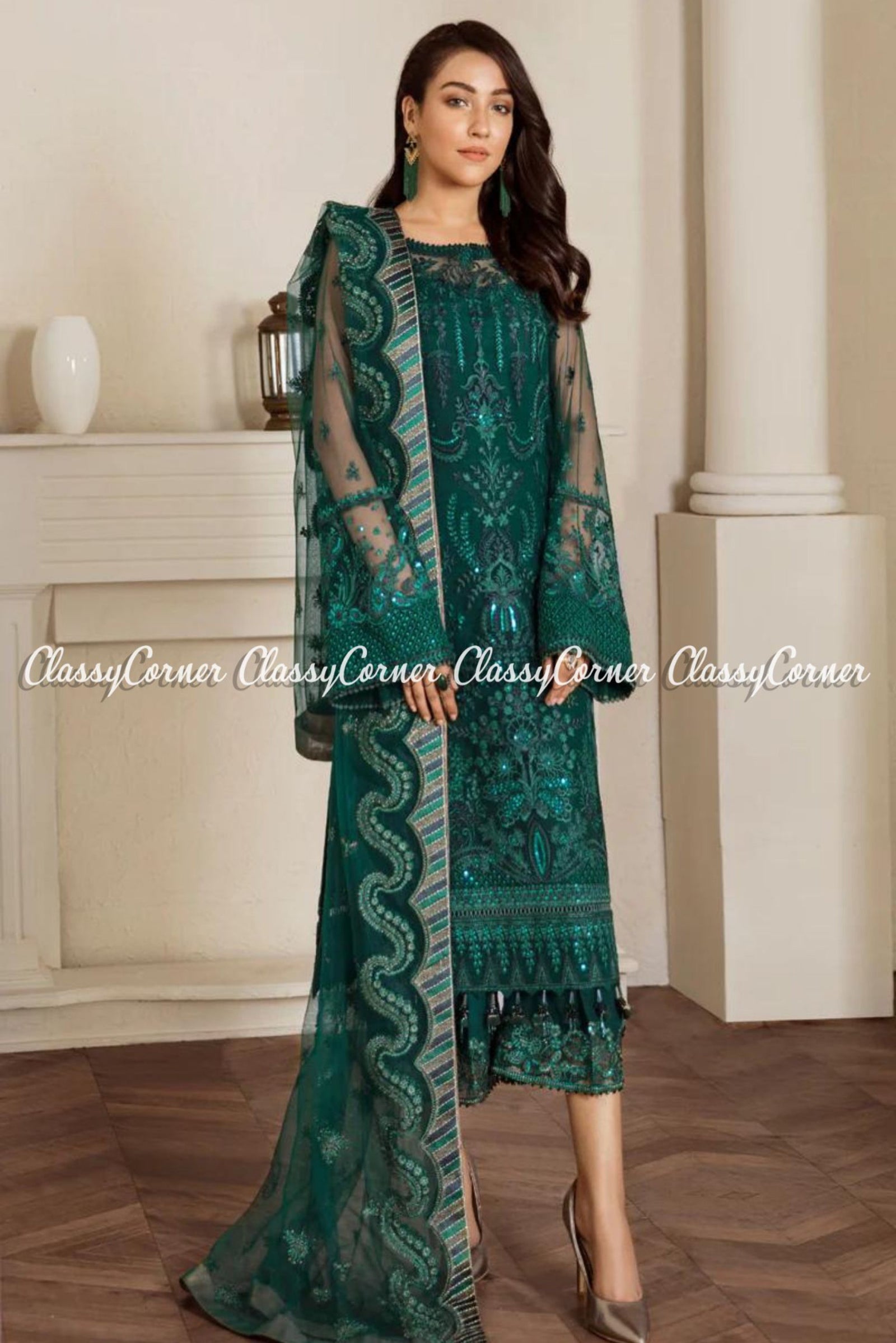 from $154.99 AUD $249.99 AUDEmerald Green Net Embroidered Party Wear Salwar Kameez