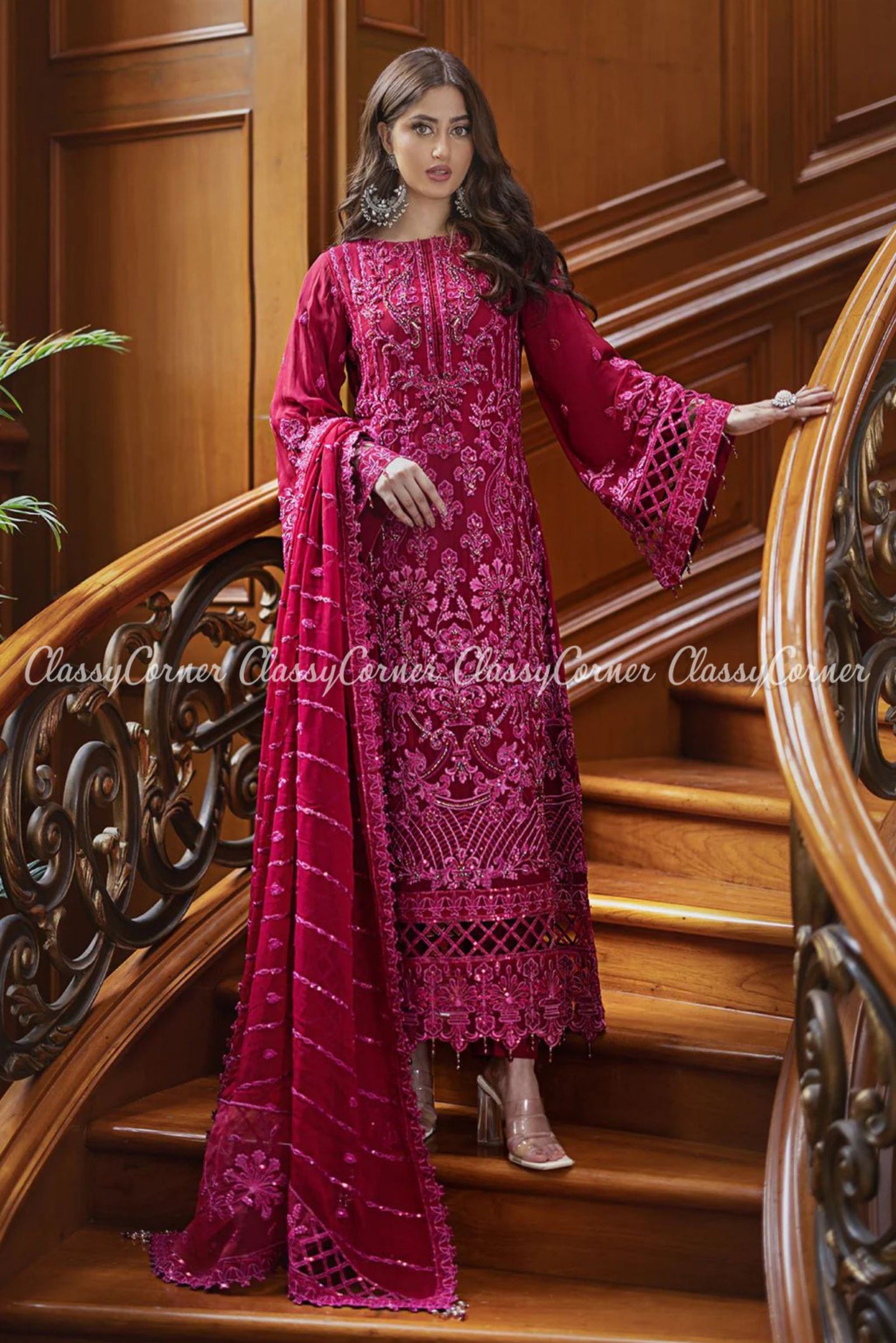 $364.99 AUDPakistani Magenta Chiffon Embroidered Salwar Kameez