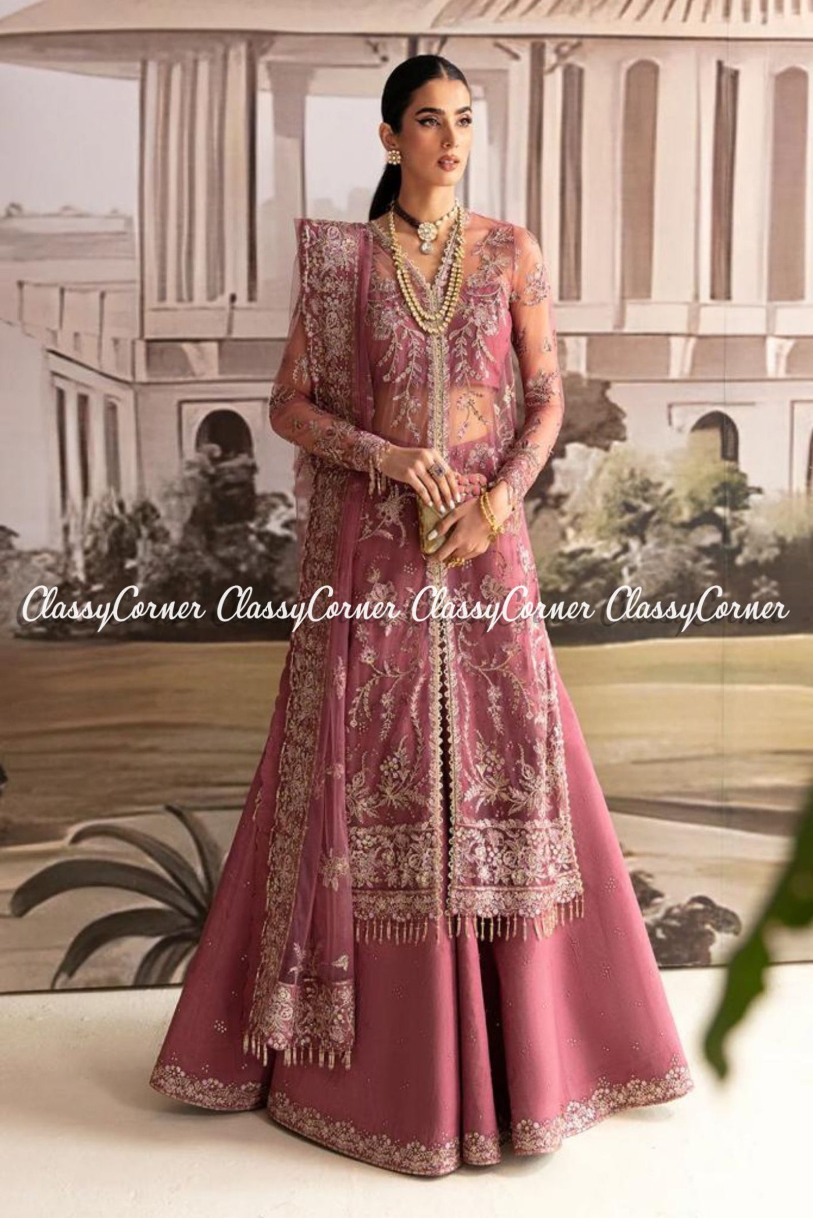 $619.99 AUDPakistani Tea Pink Organza Embroidered Sharara Outfit