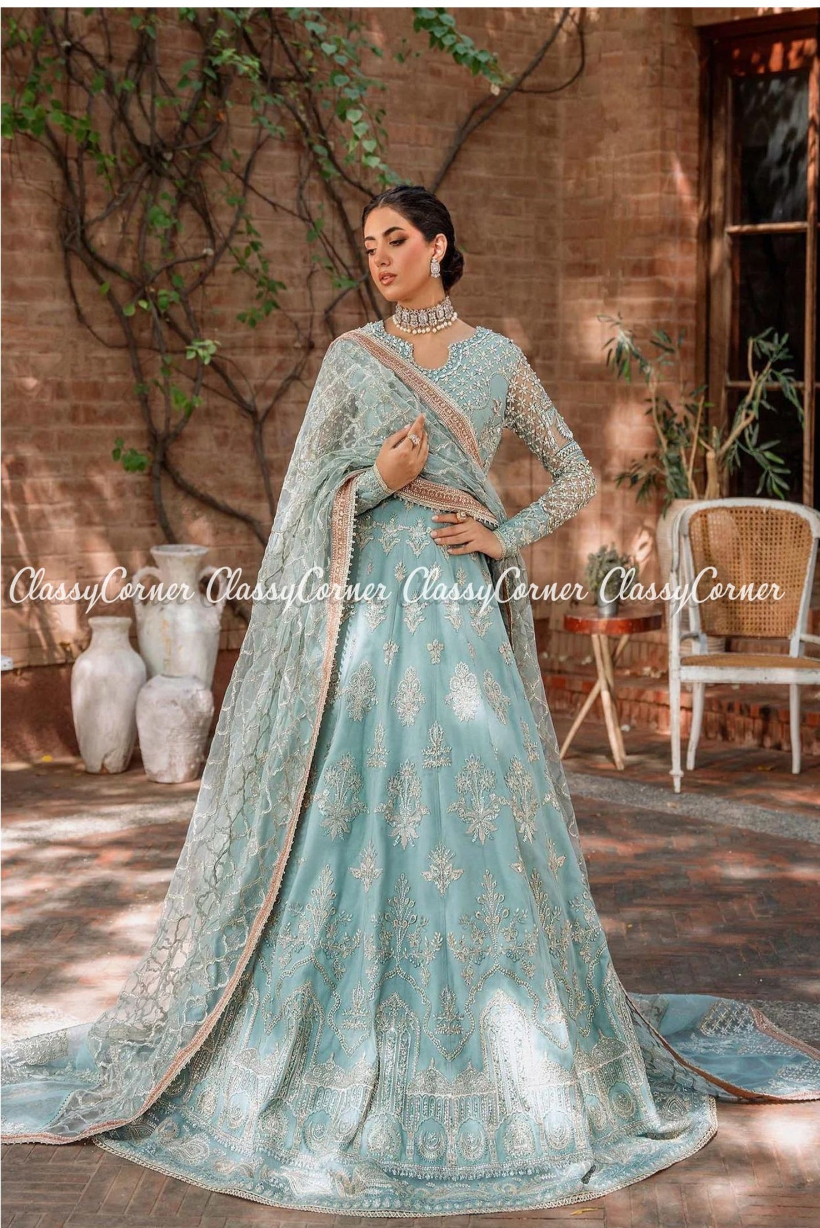 $854.99 AUDIce Blue Silver Organza Embroidered Wedding Wear Outfits