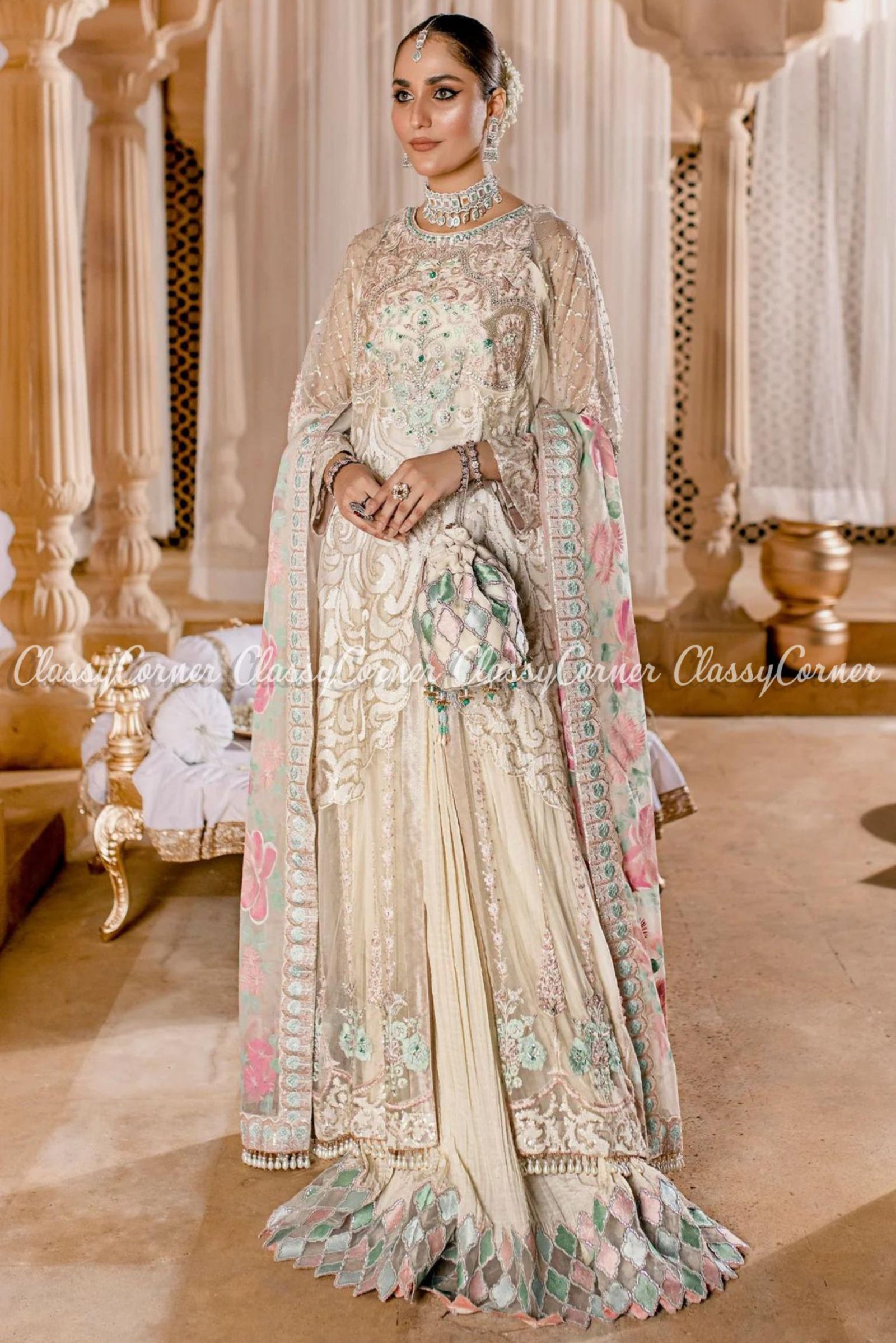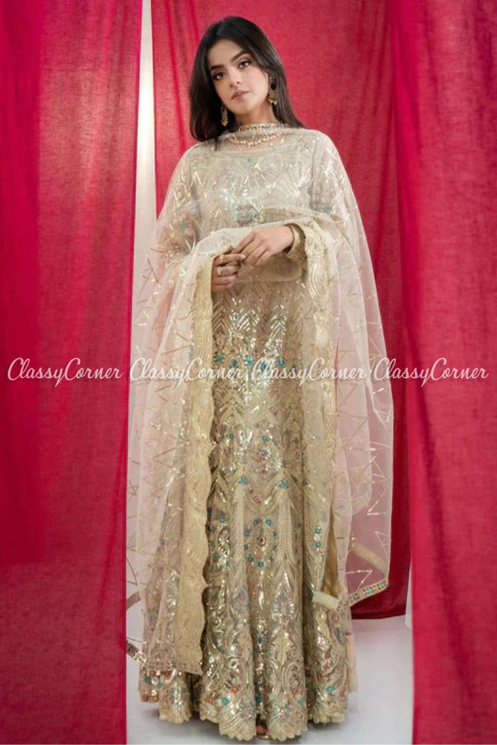 $259.99 AUDPakistani Beige Multicolor Net Embroidered Gown