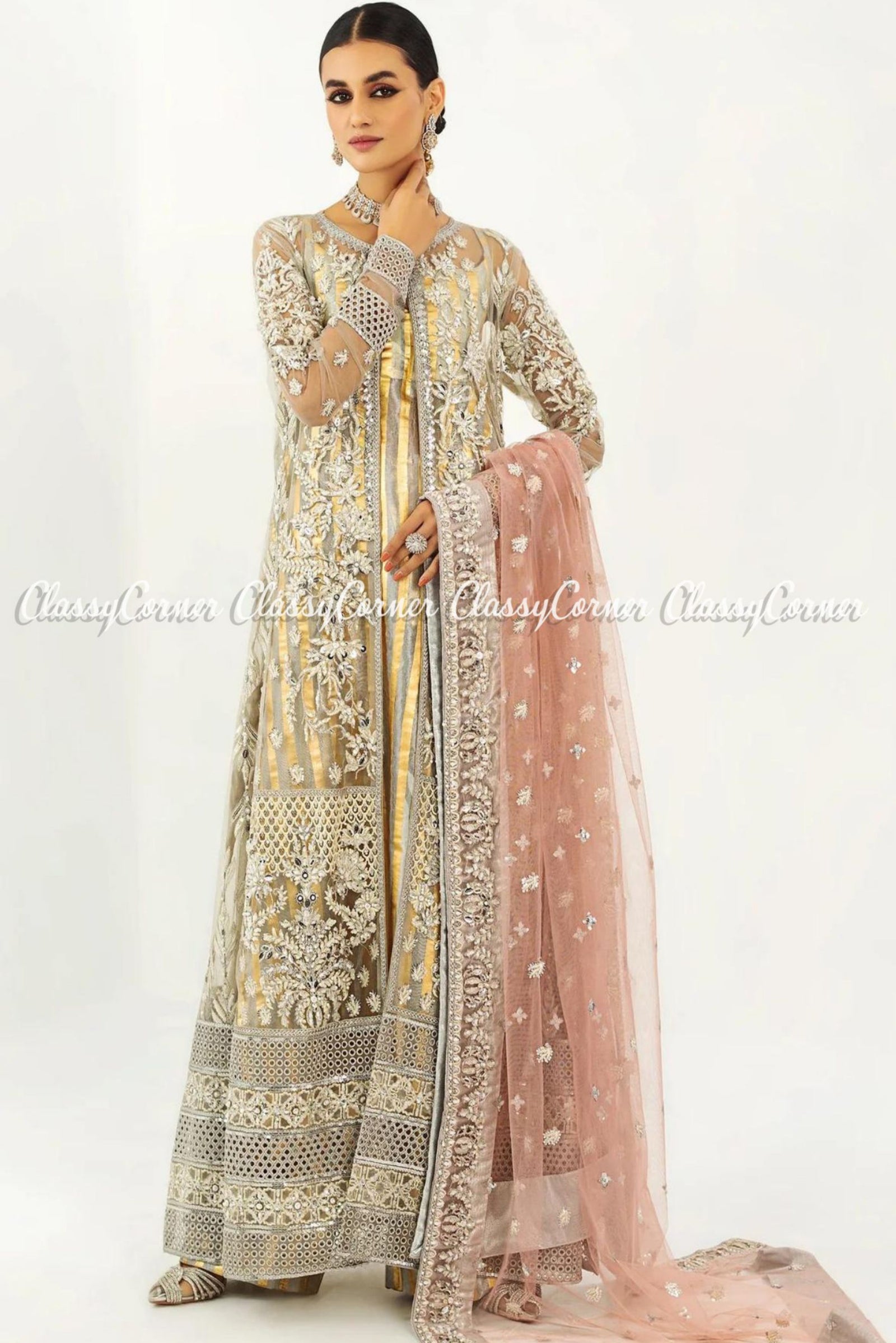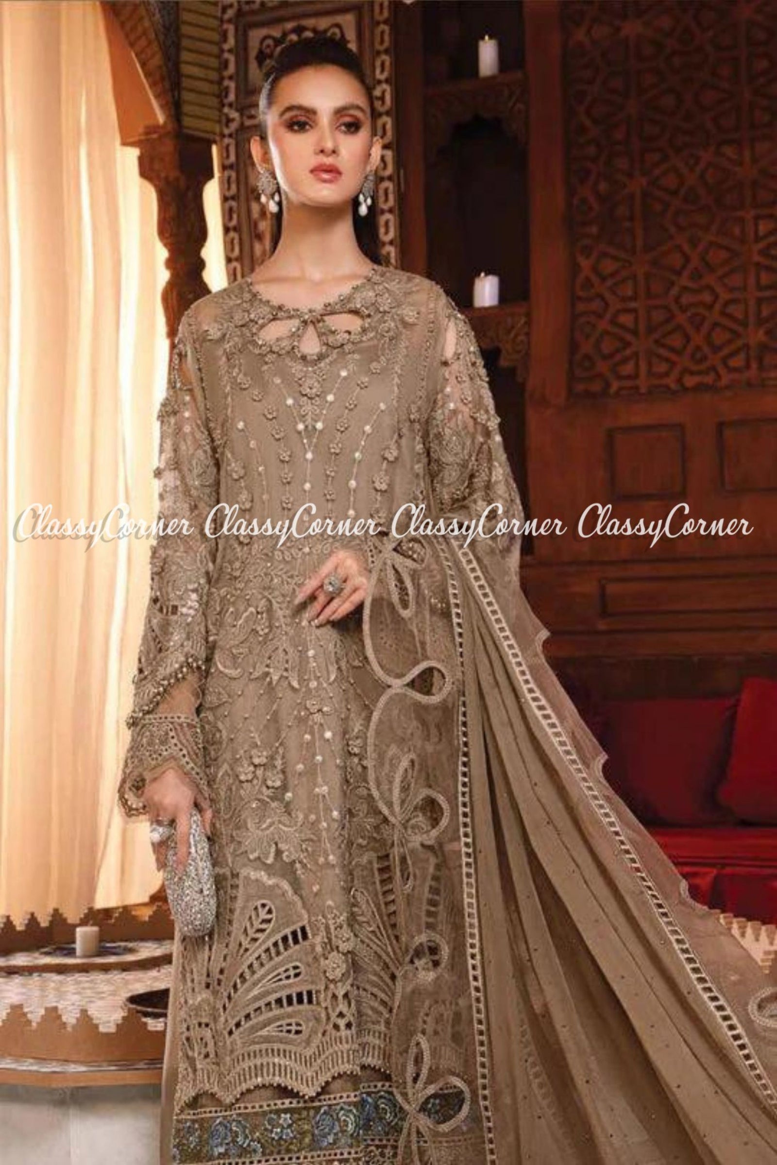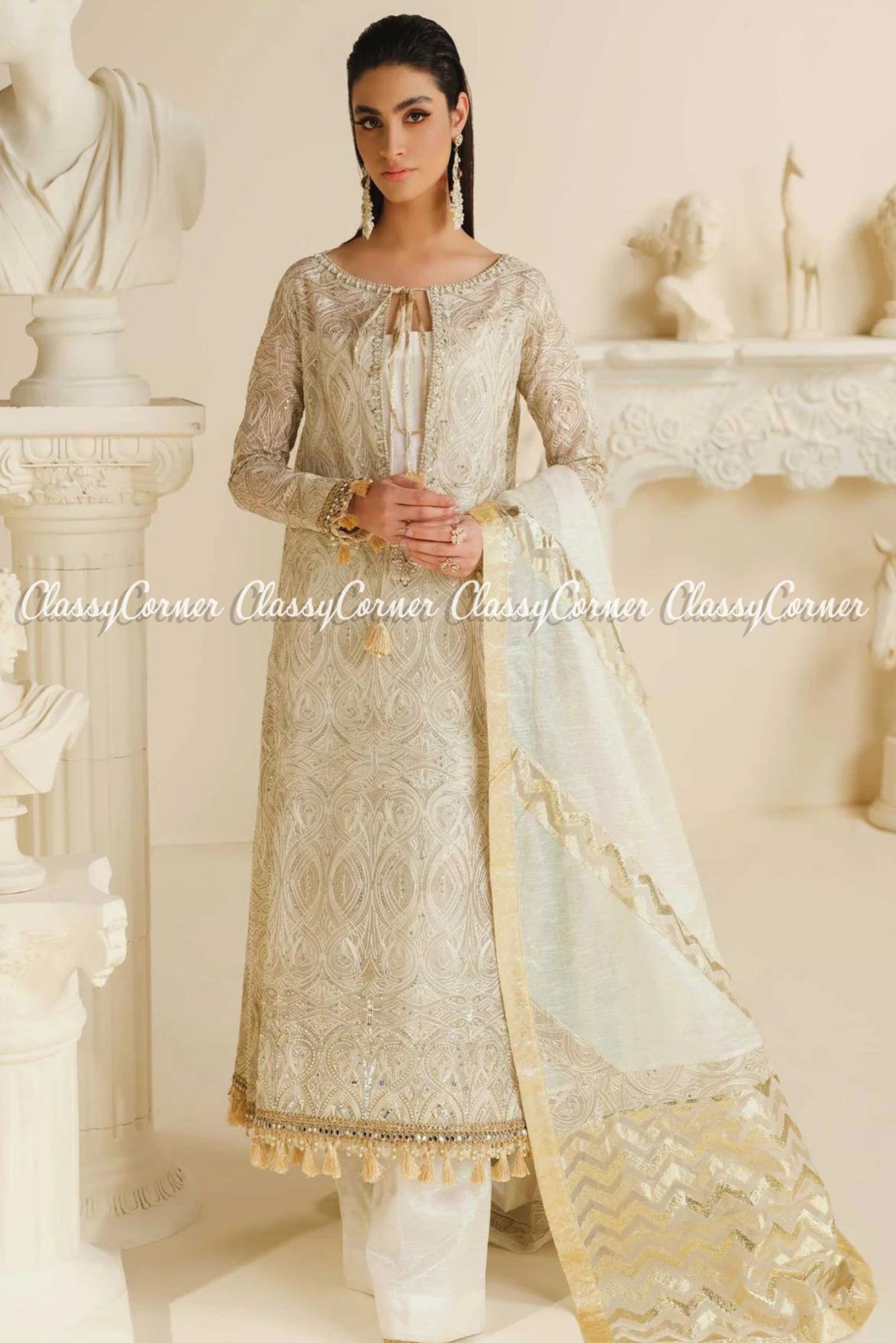 $479.99 AUDBeige Zinc Zari Net Embroidered Party wear 3 Piece Outfit