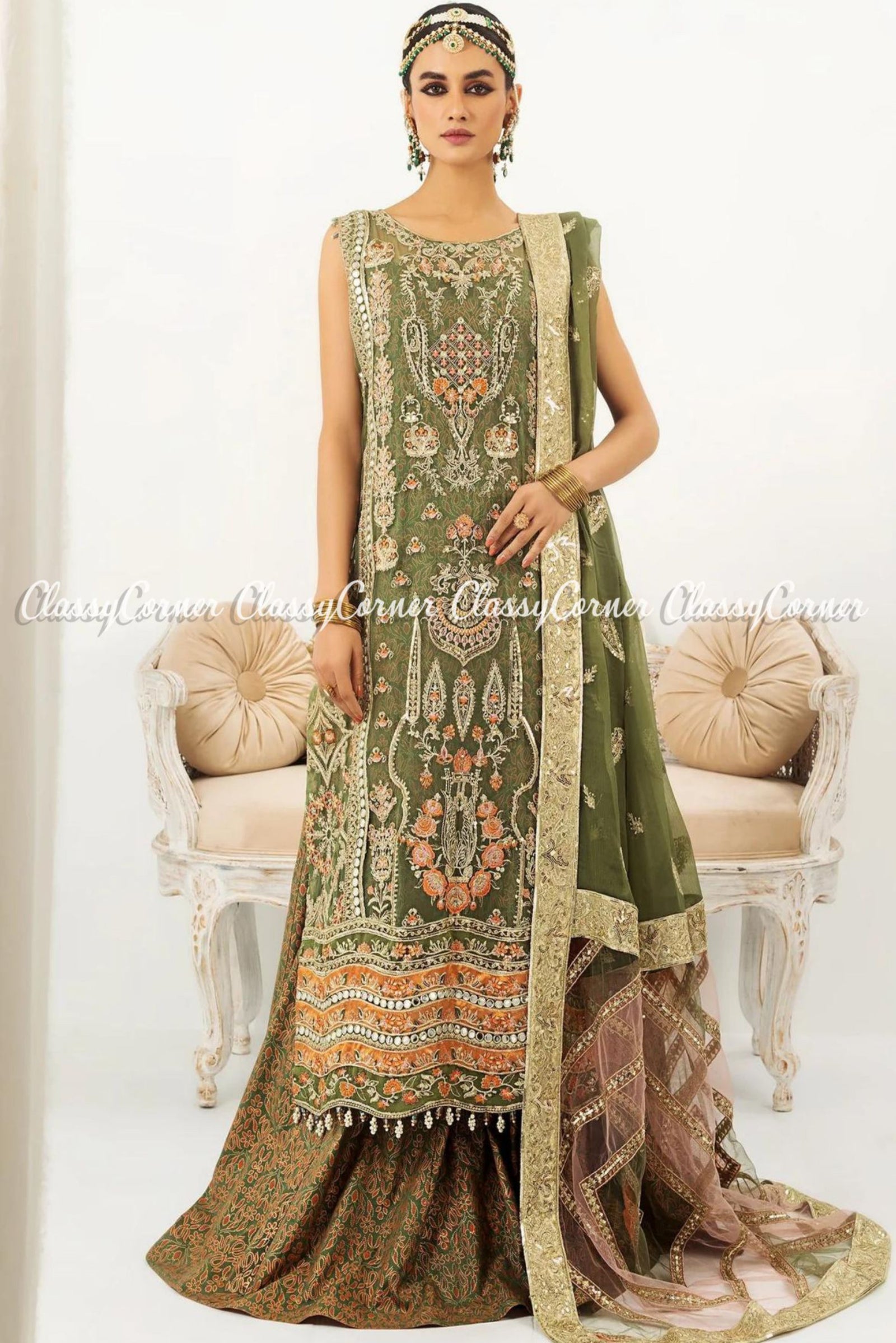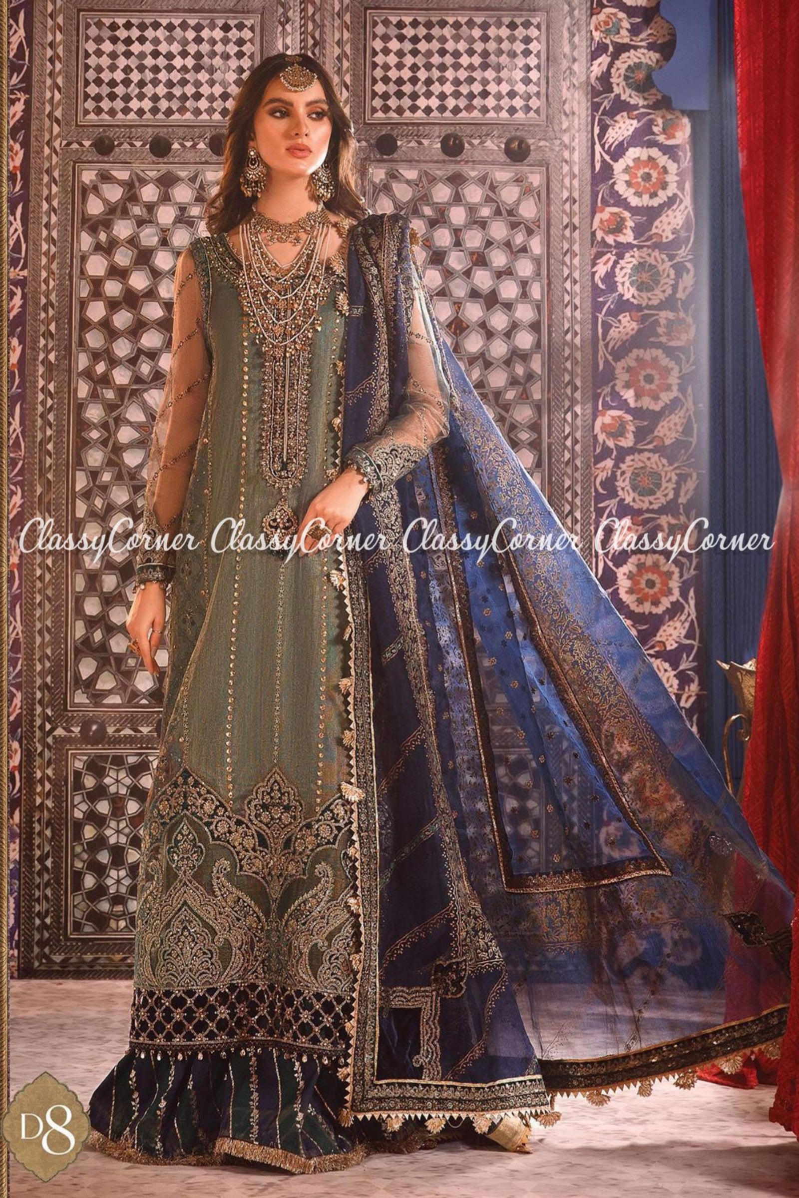 $554.99 AUDPakistani Olive Green Blue Organza Salwar Kameez