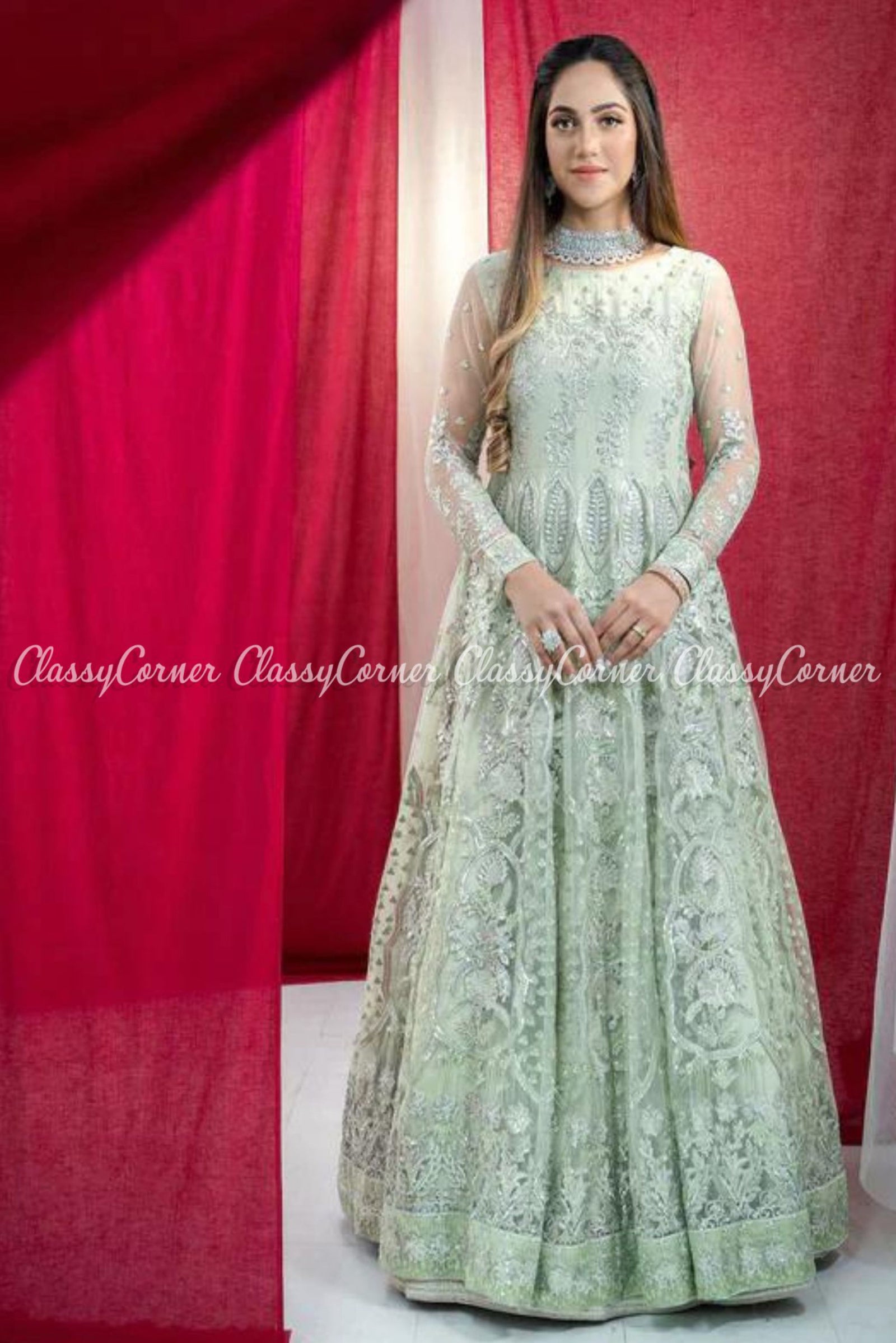 $259.99 AUDMint Green Net Embroidered Party Wear Gown Dress