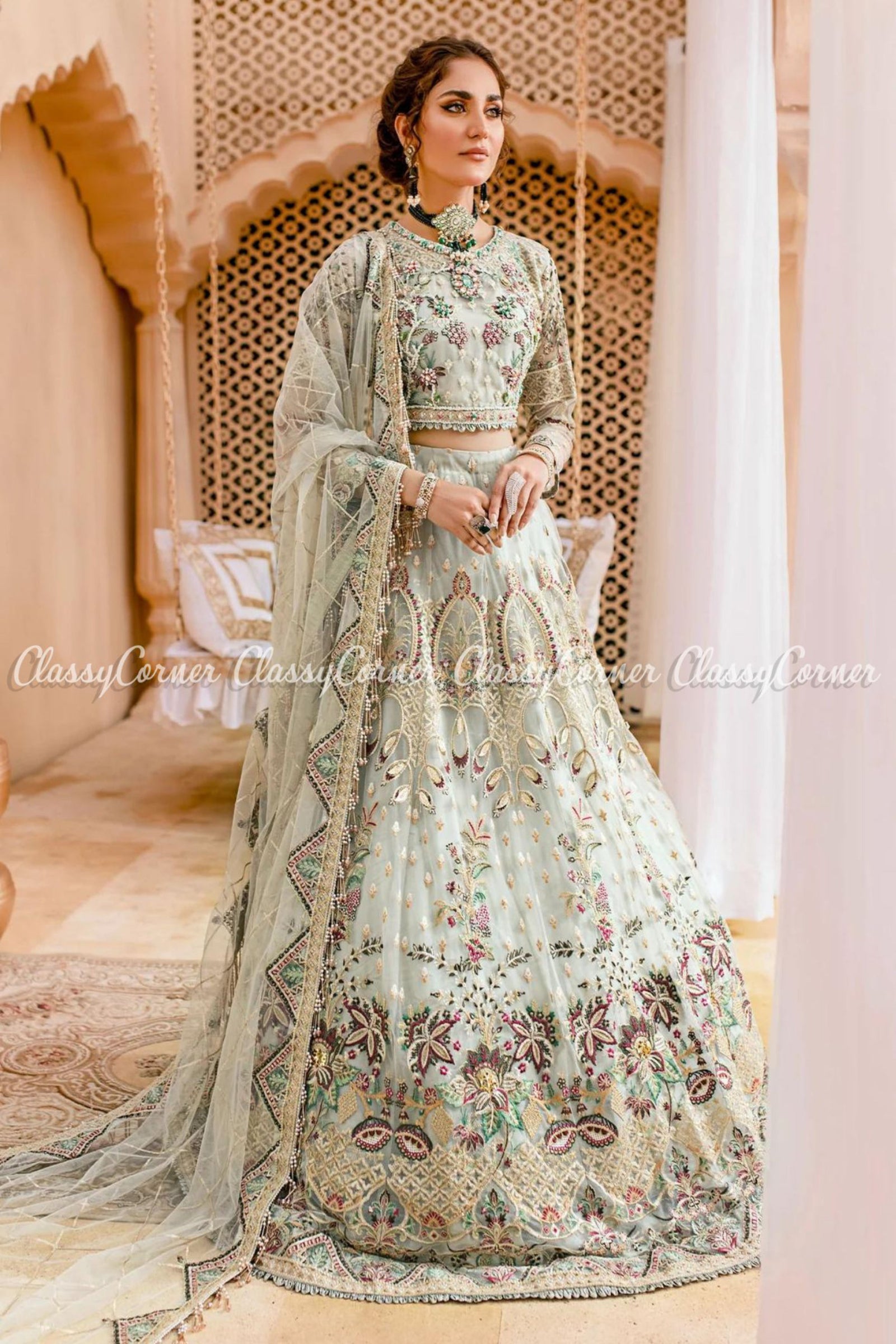 $324.99 AUDMint Green Net Embellished Wedding Wear Lehenga Choli