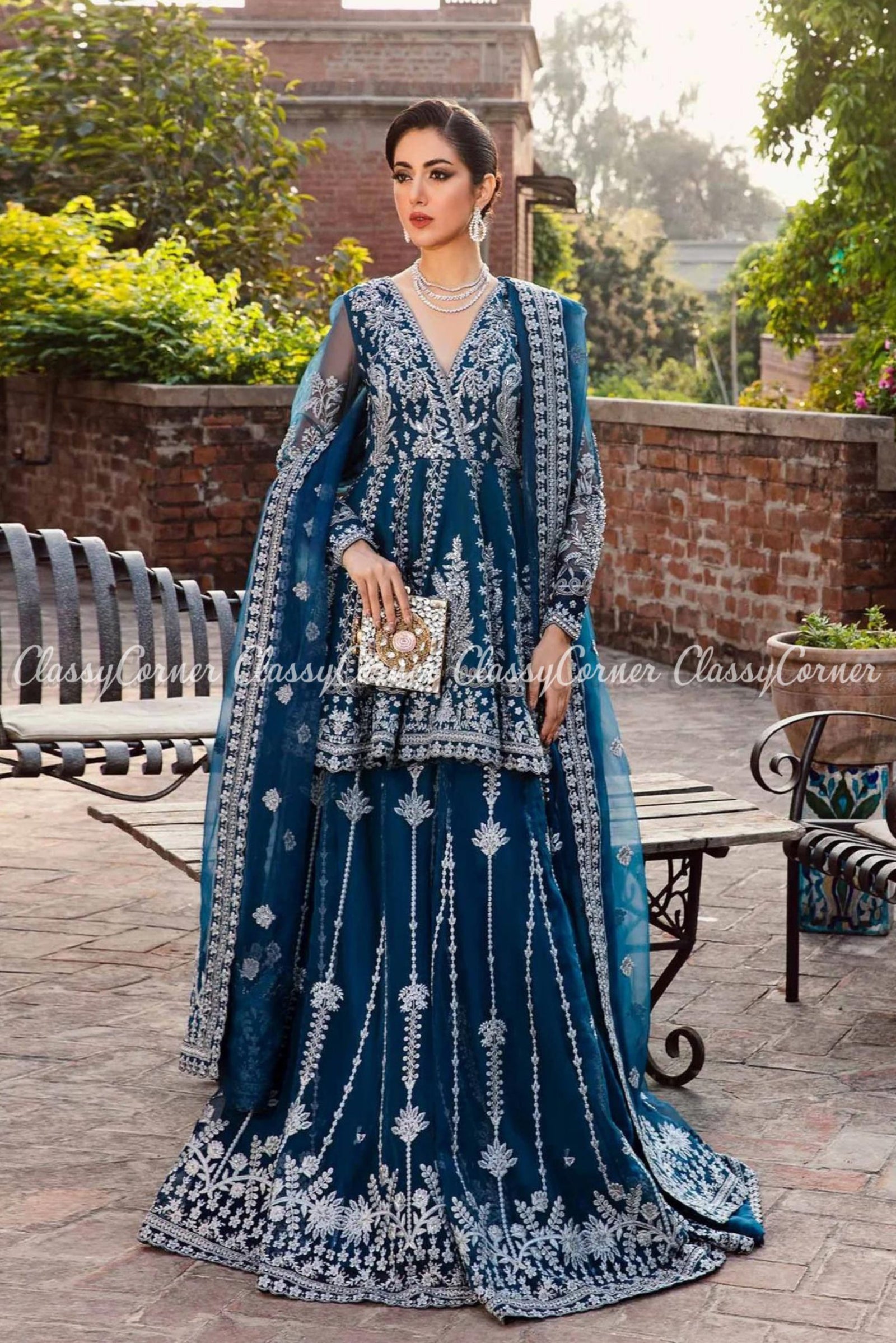 $419.99 AUDNavy Blue Organza Embroidered Party Wear Sharara Dress