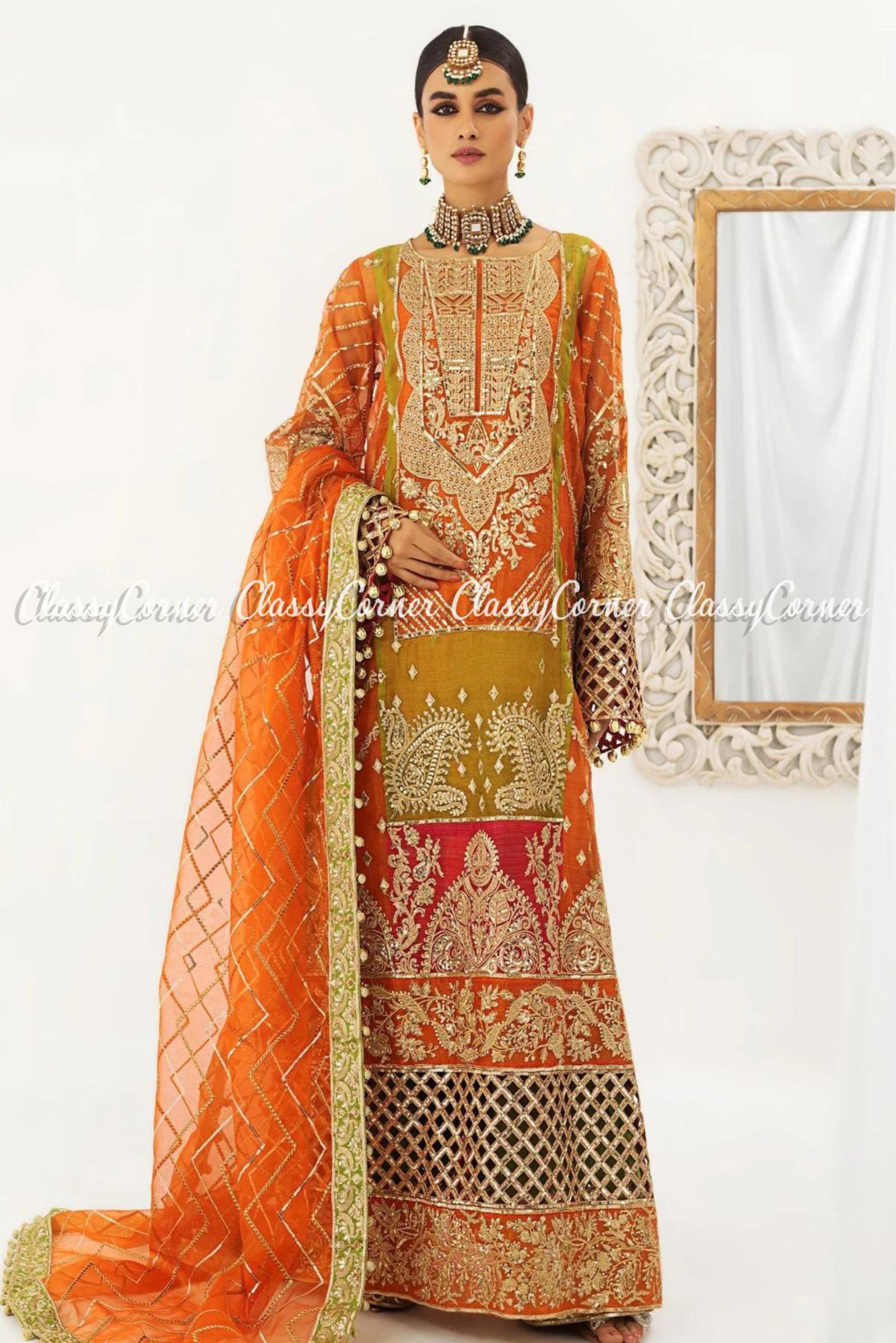 $309.99 AUDOrange Golden Embroidered Wedding Wear Dress