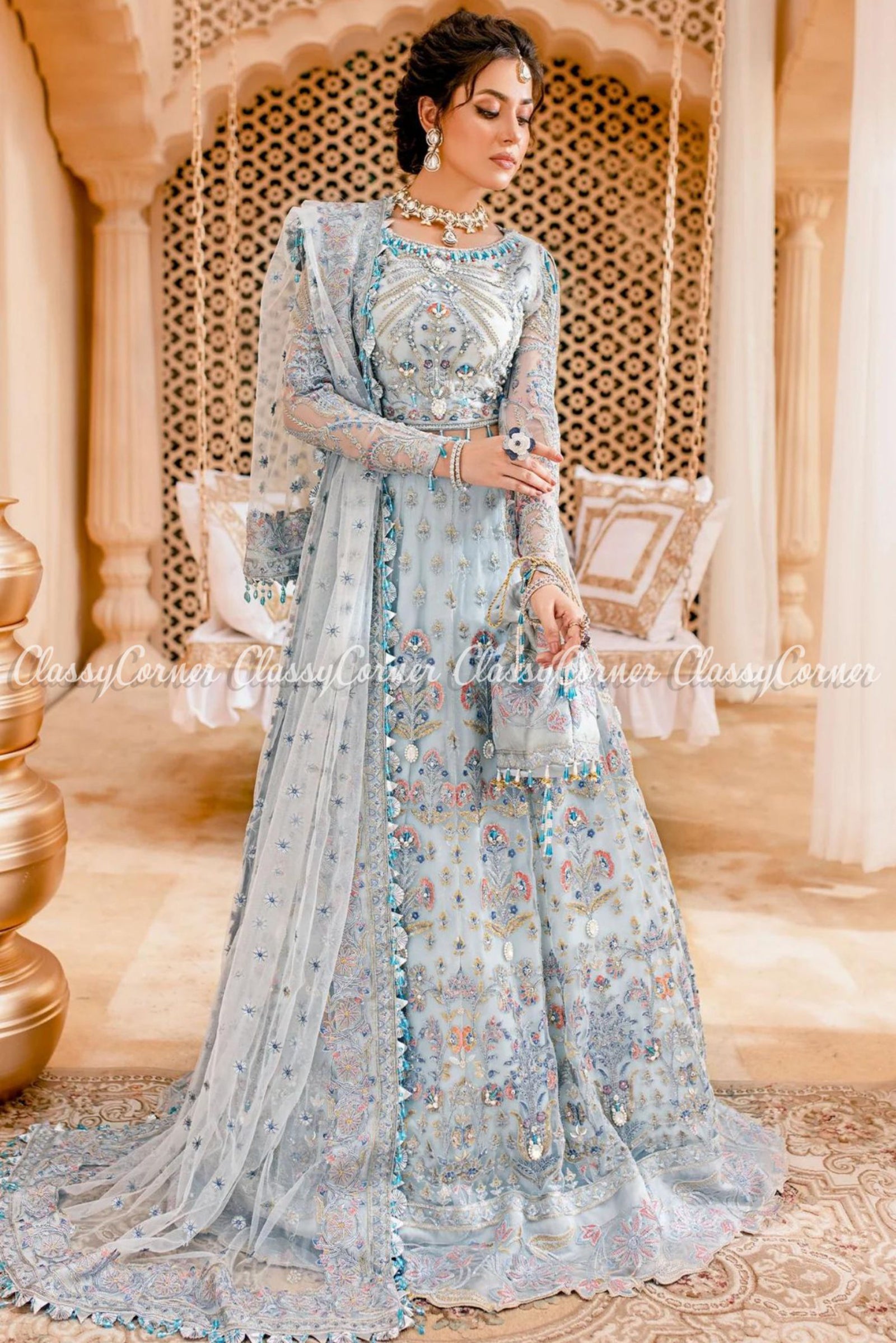 $374.99 AUDSky Blue Net Embellished Wedding Wear Lehenga Choli