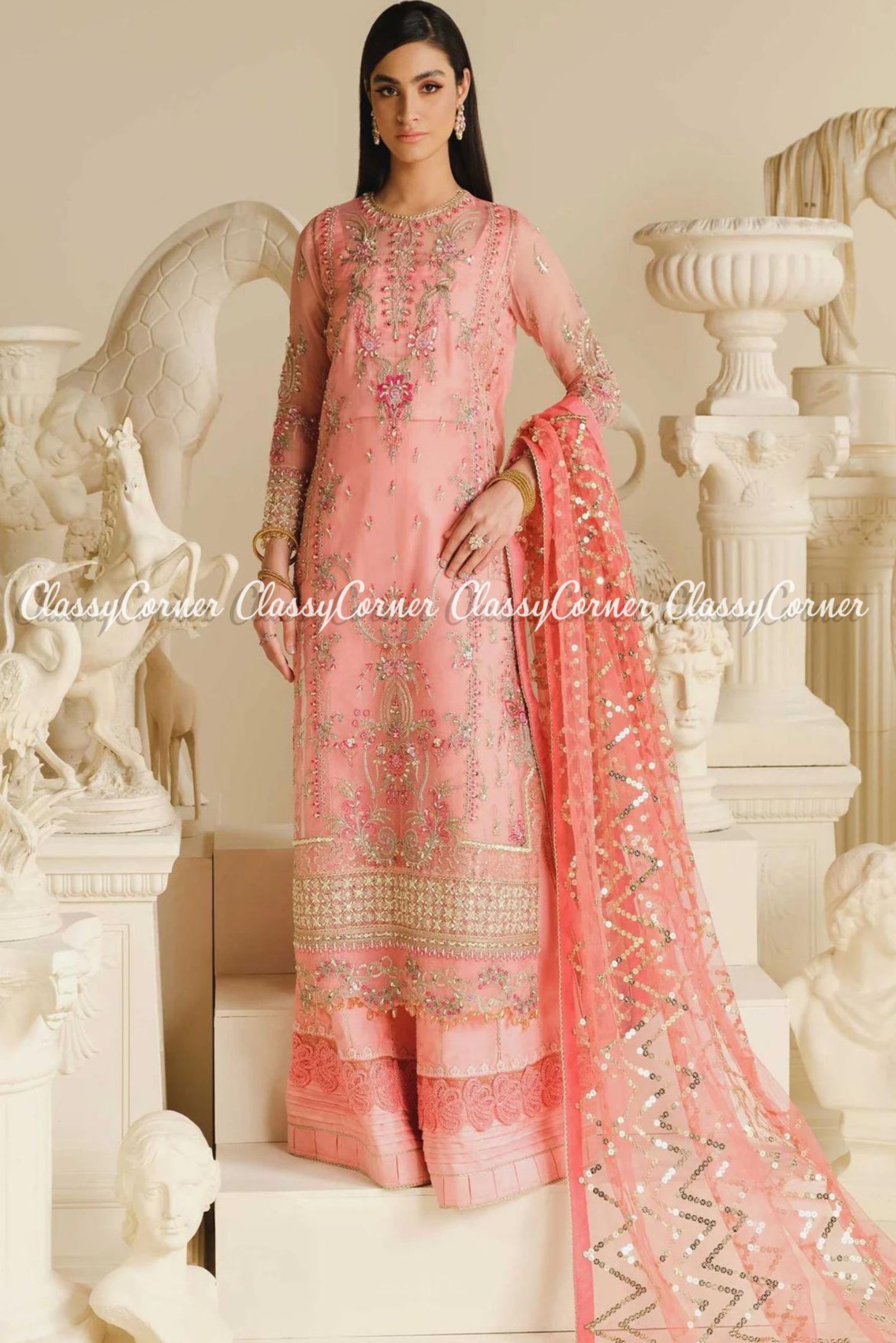 $419.99 AUDPeach Red Net Embroidered Pakistani Salwar kameez
