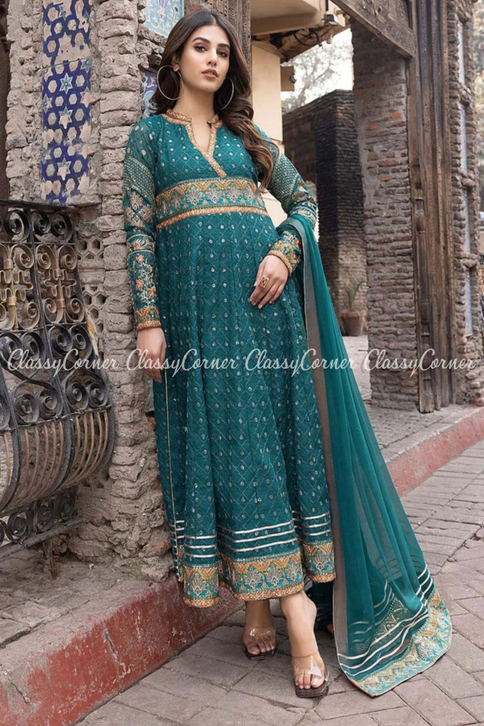 $279.99 AUDIce Blue Green Net Emroidered Party Wear Salwar Kameez