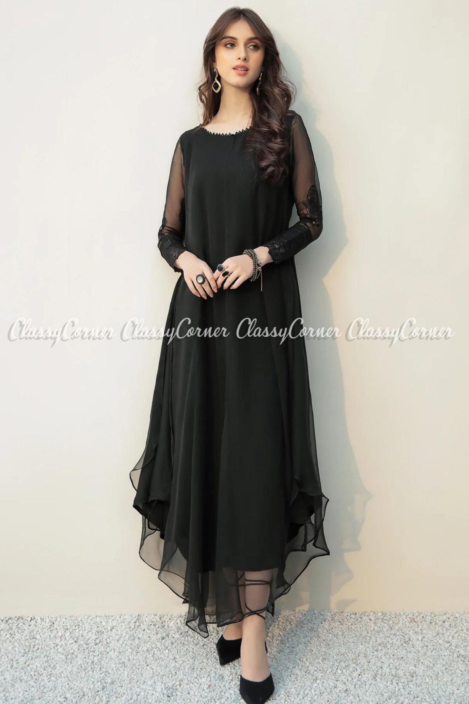 $239.99 AUDBlack Embroidered Chiffon Pakistani Frock Outfit