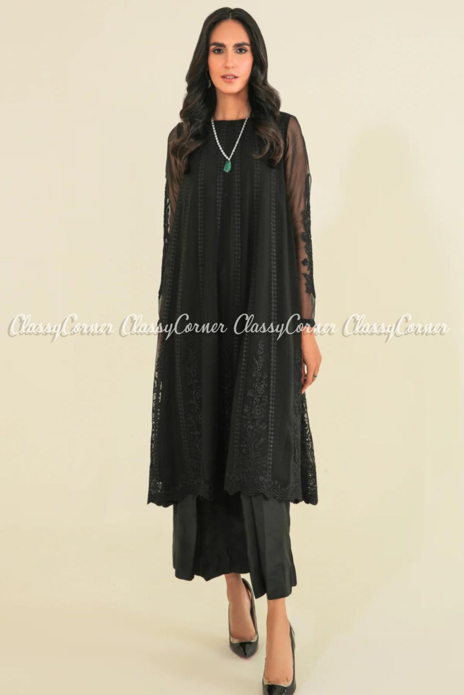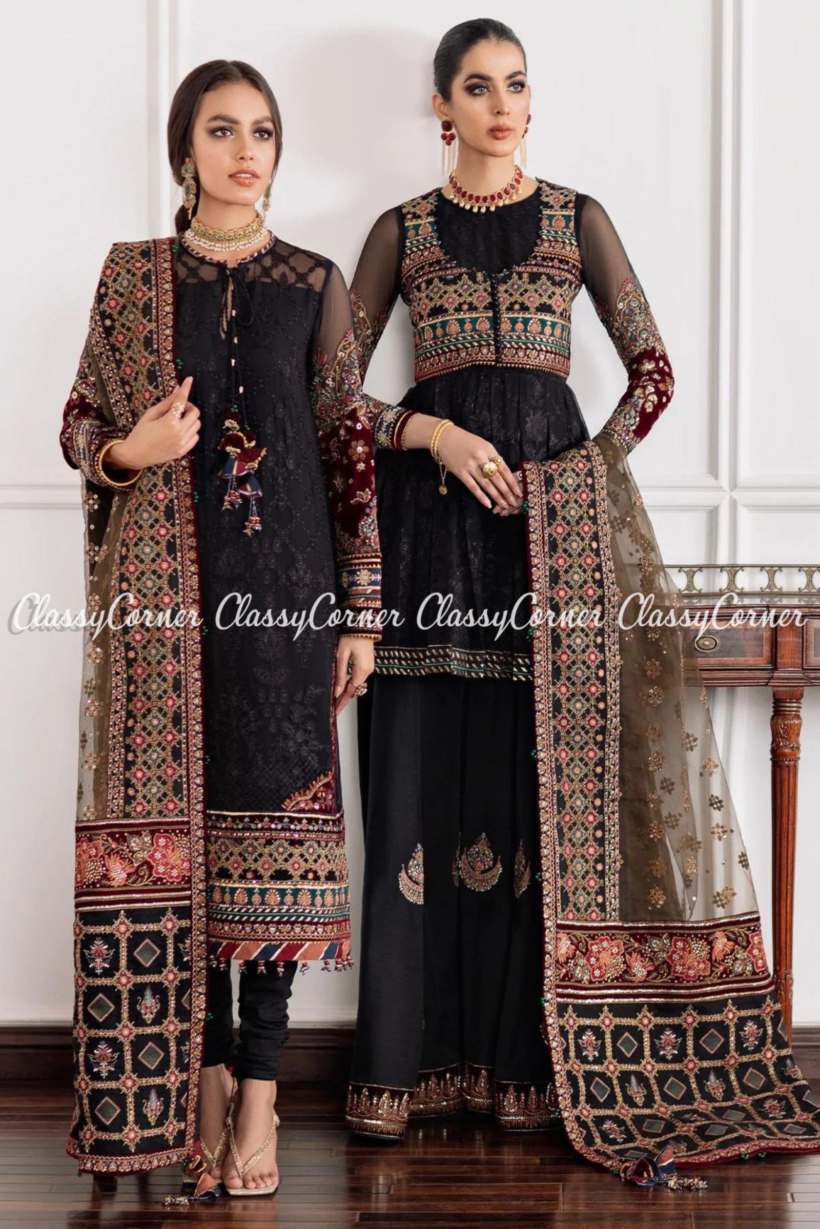 $238.99 AUDBlack Embroidered Chiffon Pakistani Frock Outfit